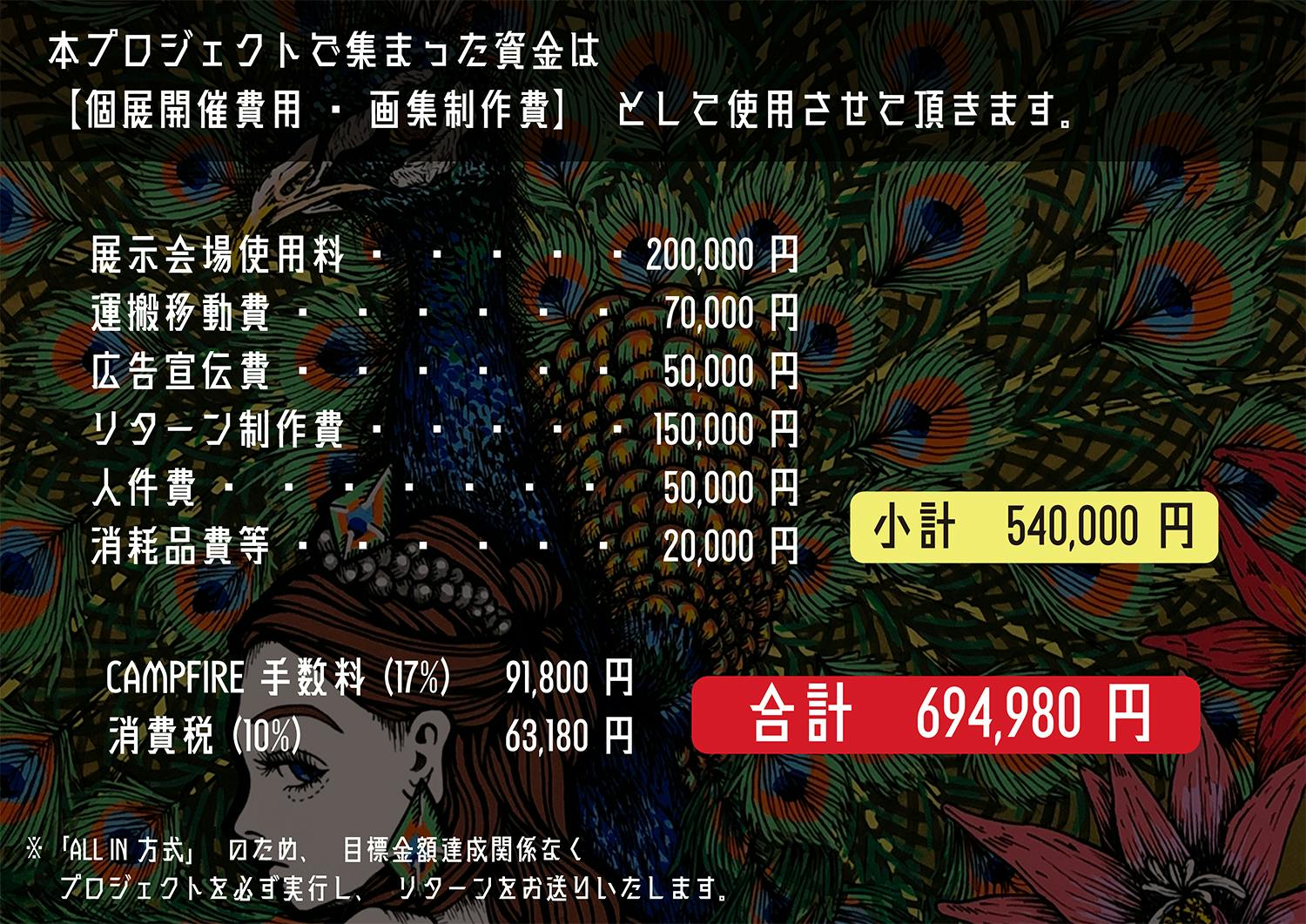 個展をさせて頂くのでその資金もご協力いただければと思います。