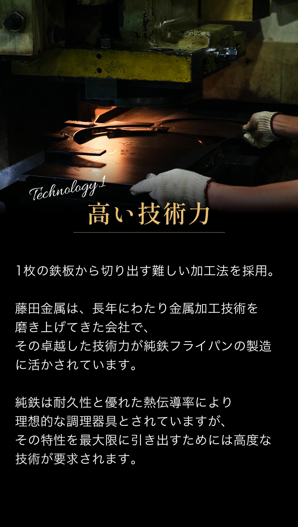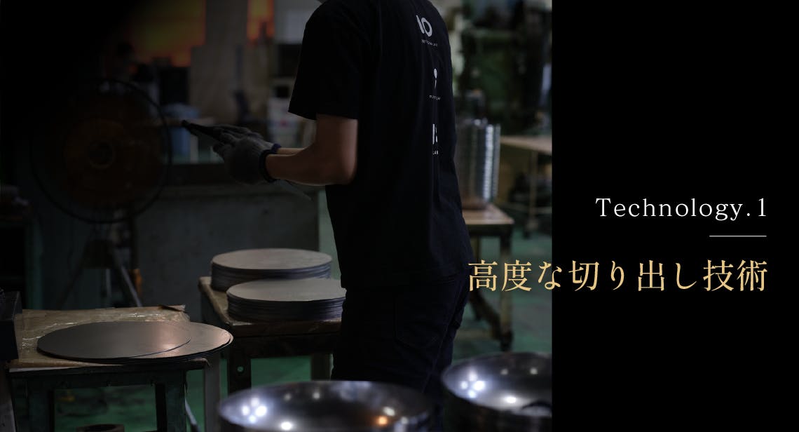 「正確な切り出し技術」は、「至高の鉄フライパン哲(TETSU)」の製造過程における一つの重要なステップです。このフライパンは、一つ一つが職人の熟練した手作業によって切り出され、その形状が作られます。