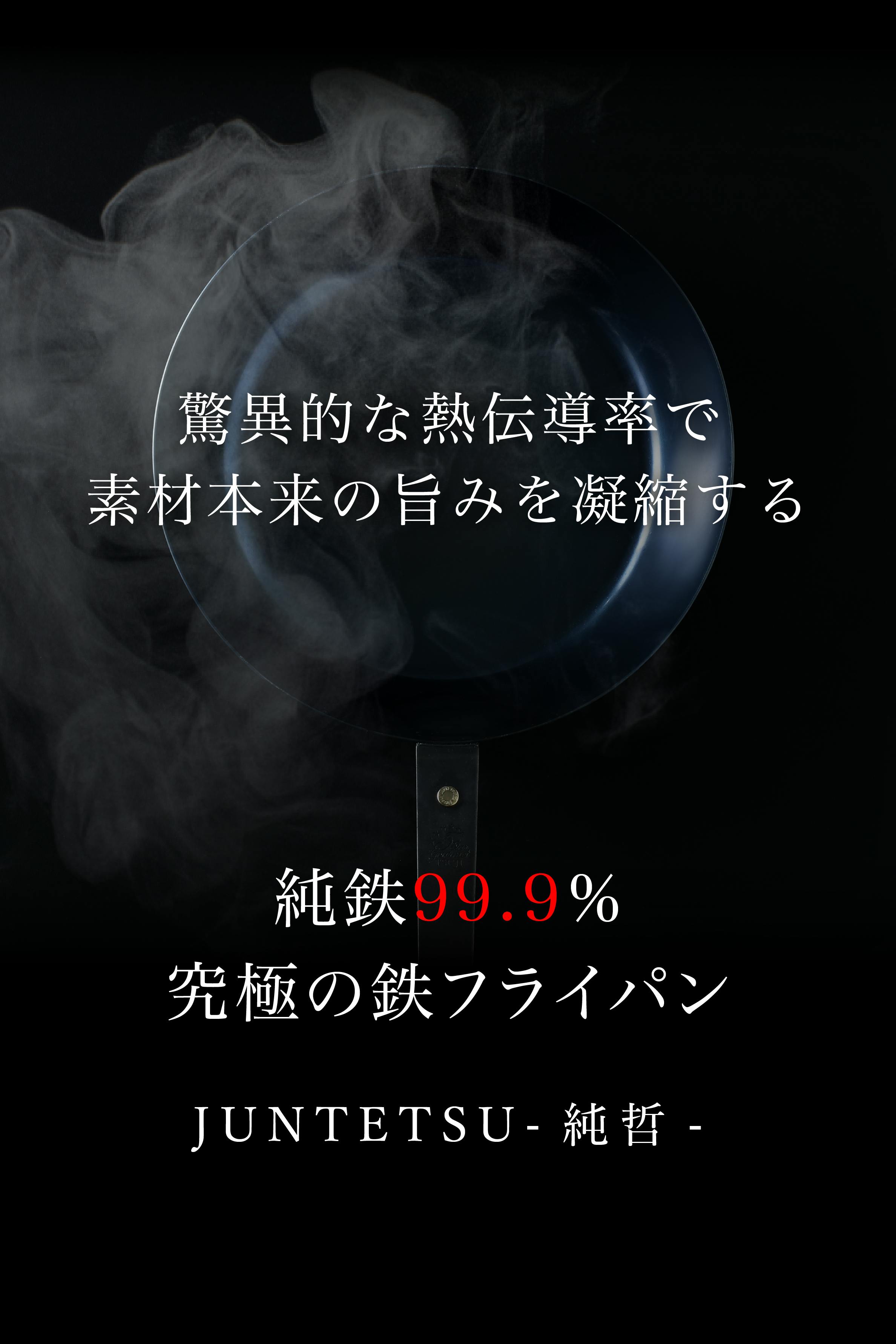 プレミア鉄フライパン 純哲(JUNTETSU)は、熱伝導率の高さを究極にこだわるために、鉄の中でも純度が最も高い純鉄99.9%を採用して作りました。