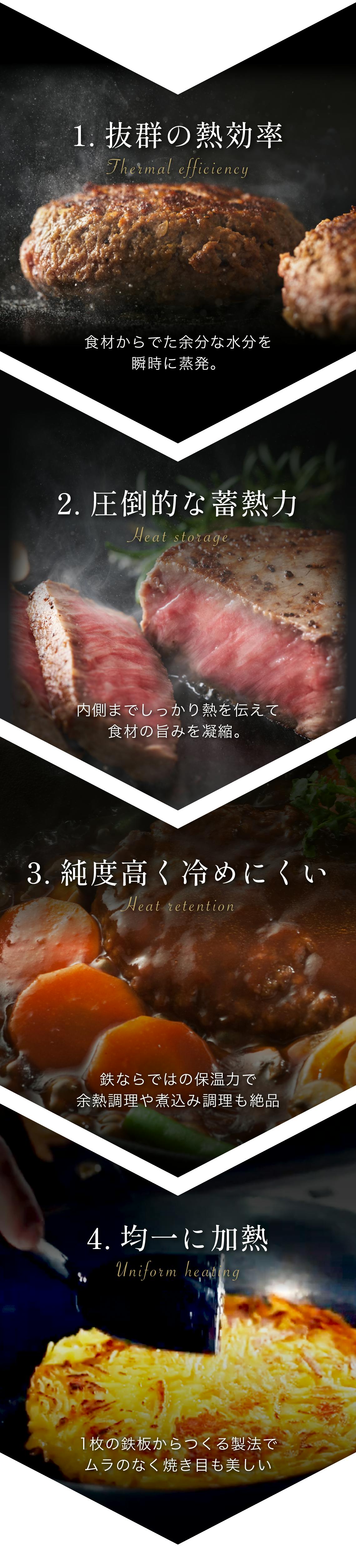 そしてその高い熱を保ち続け、食材の水分を適度に保ちつつ、内部へと熱をしっかりと伝えます。