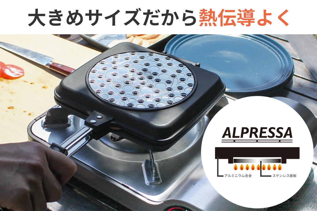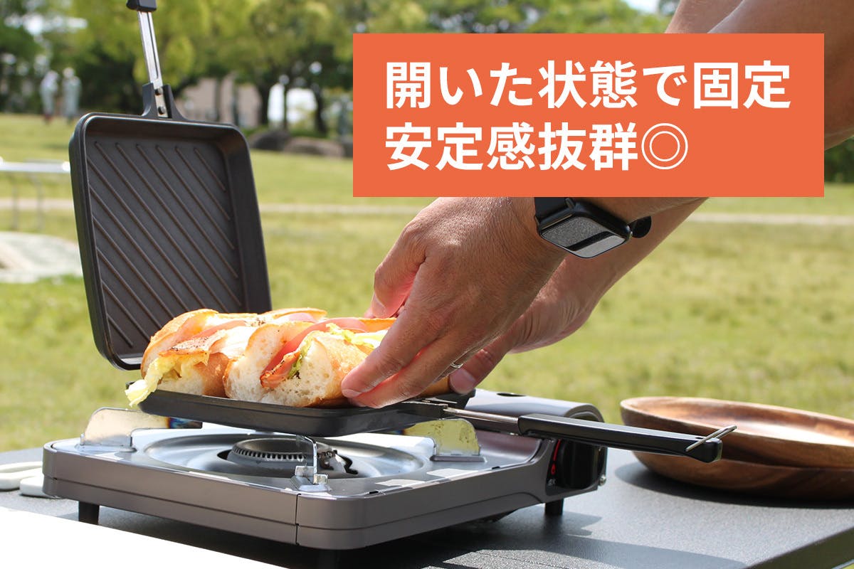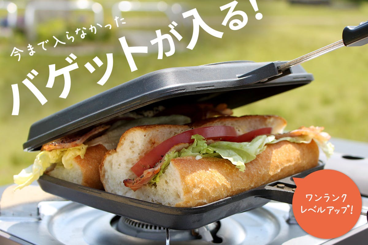 アウトドアクッキングが好きな方にお勧めなワイドサイズの「バゲットサンドメーカー」。一般的なものの約1.5倍サイズなので、バゲットも厚切りパンもそのまま焼けます。おかずも作れる大きめサイズなので、キャンプ時の朝食はもちろん、毎日のお弁当やちょっと炒めたい時のフライパン代わりにもなり、家でも外で便利に使えます。