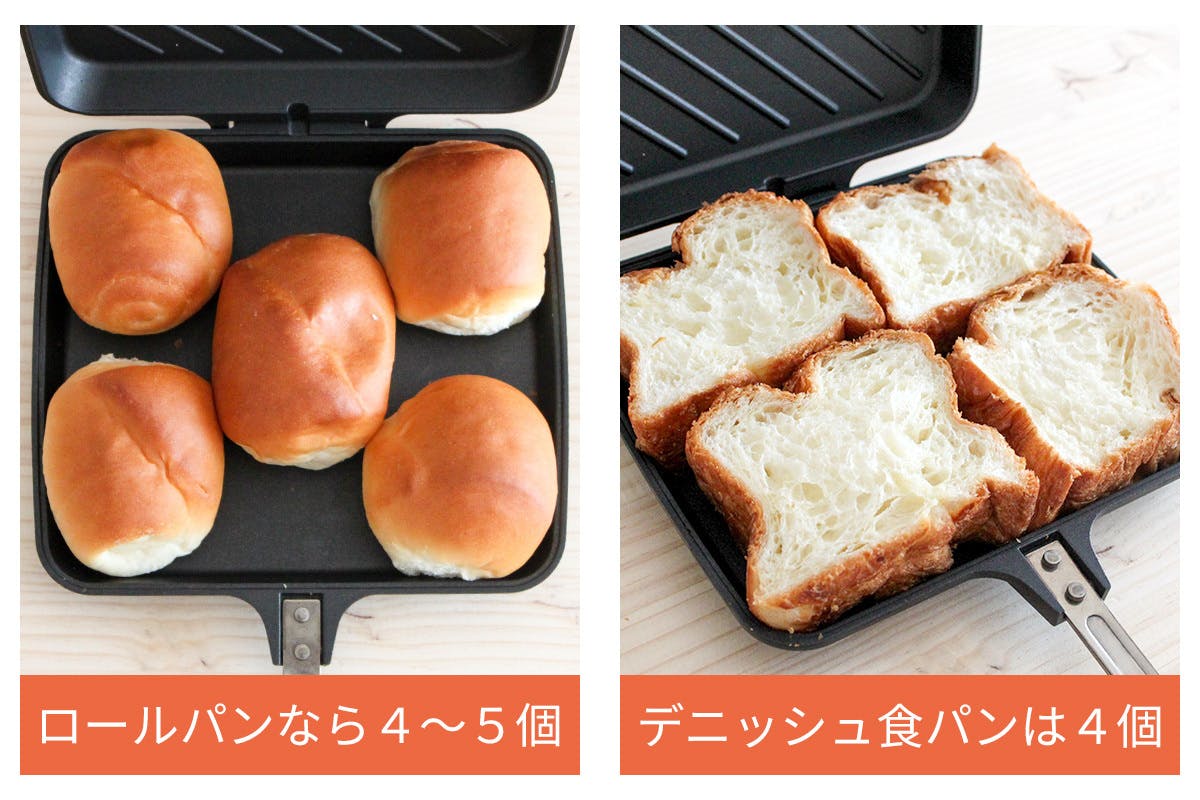 ロールパンやデニッシュなど小さいサイズのパンは一度に焼けるので、家族や友人とのアウトドア朝食も一気に作れて便利!