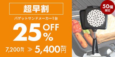 バゲットサンドメーカー1台 通常7,200円(税込) ⇒ 6,480円(税込)