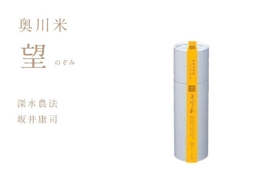 寒暖差が大きい気候、肥沃な土壌、飯豊山から流れ来る清らかな伏流水に恵まれた中山間地域で極上のお米を作って50年。"奥川が誇る米づくり名人"。奥川の自然、そして、稲と対話をしながら、作ってきたお米は「ごはんをおかずに、ごはんが食べられるほど」の美味しさ。国内外の米を集め、審査、評価する「米・食味分析鑑定コンクール国際大会」にて2014年(第10回)、2021年(第23回)、2022年(第24回)と最高賞の「国際総合部門金賞」を三度受賞した「世界一の米」。収穫数が限られている希少品。今年は食味値89点、過去最高は93点を獲得。