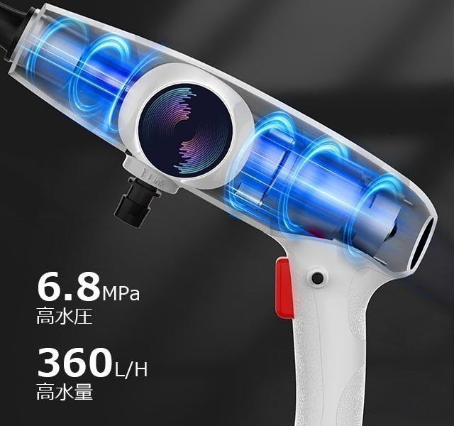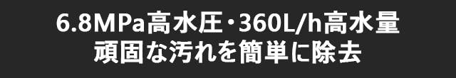 6.8MPaの高水圧!さらに360L/hの大水量により頑固な汚れも簡単に除去!