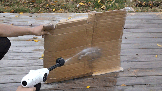 その圧倒的な水圧は薄めの段ボール程度であれば打ち抜けます。