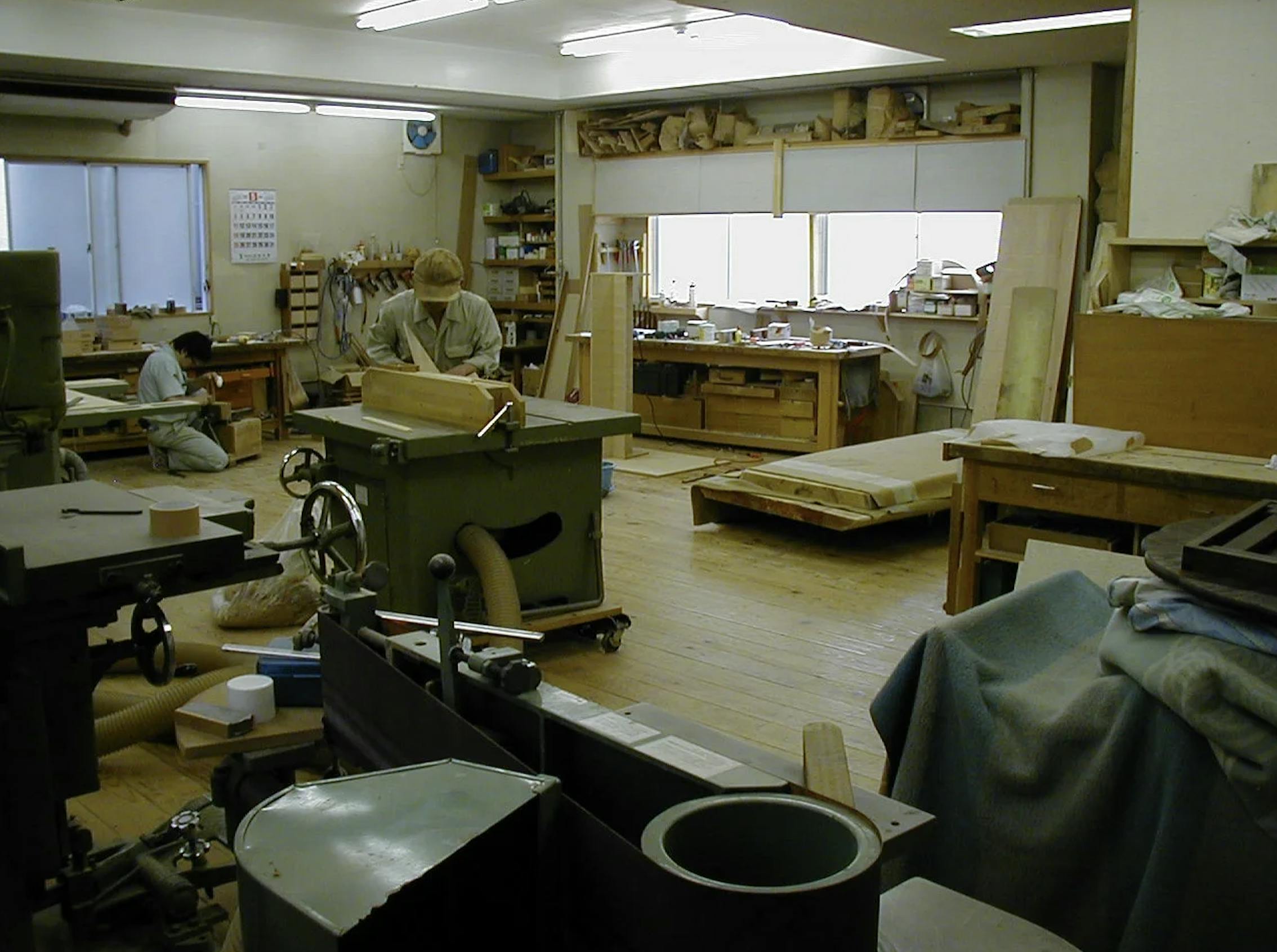 そして現在の代表である叔父も木工家具に関する修行をしたのち富士室内工芸の”番頭”となり約15年前に祖父から叔父へ会社を引き継がれたと聞いています。その頃には会社全体の人数は15名ほどに増え新しい工場を構え、オーダーでの木工家具製作やショーケースの作製、木のお皿や小物と多岐にわたり家具職人が腕を振るう日々が続いていました。