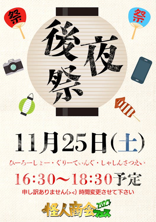 イベントの開催時間を「16:30〜18:30」に変更させて頂きたいです。