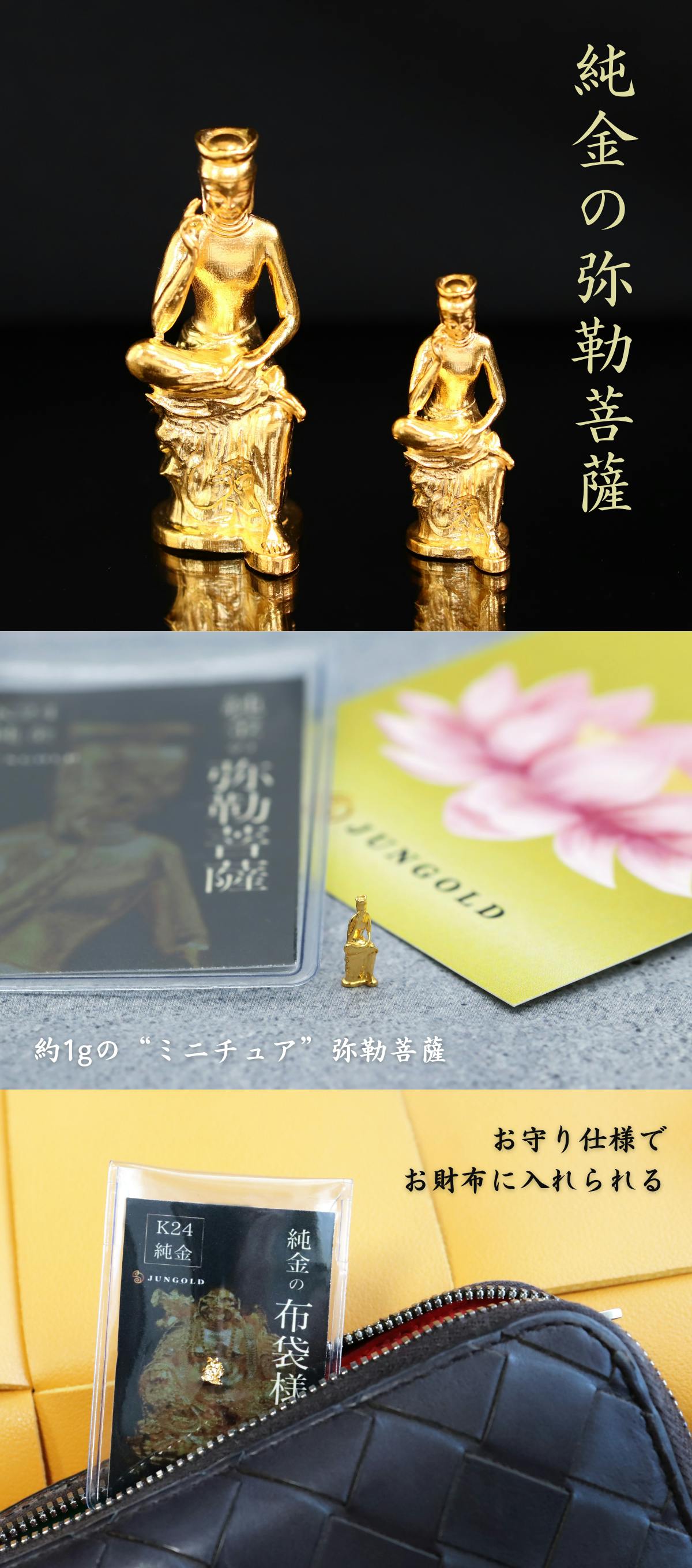純金製品の「JUNGOLD」より、K24純金で作った“仏様”が登場しました。