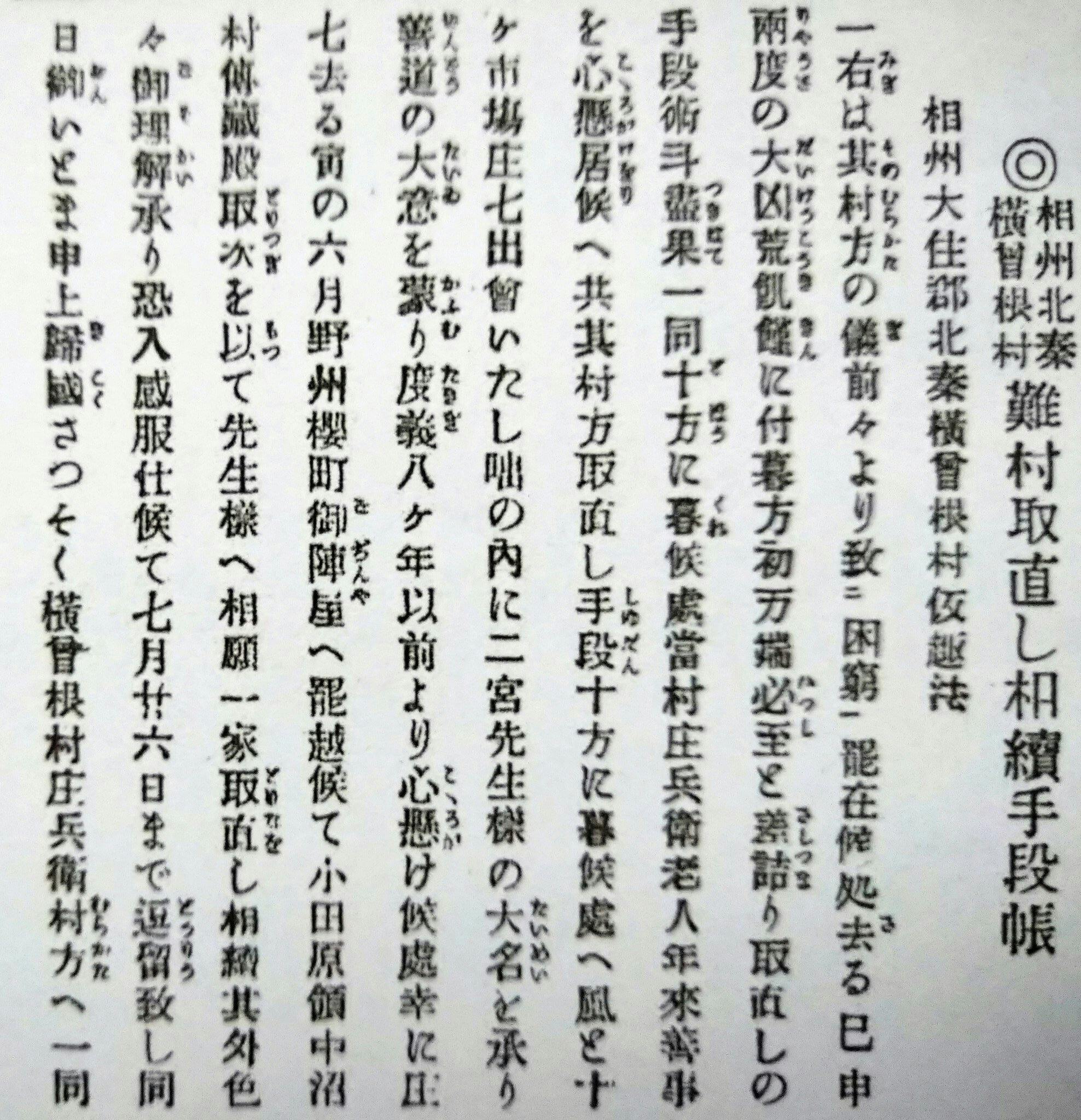 現代語版において、これまでよく知られていなかった安居院庄七による秦野の横曽根村仕法について新たに説明を加えました。