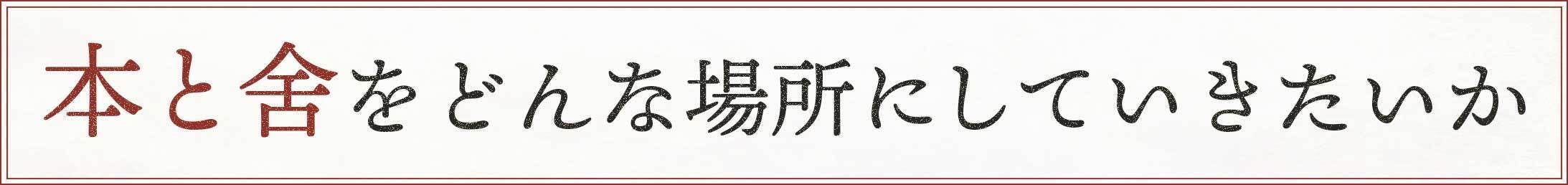 本と舍をどんな場所にしていきたいかをざっくりいうと、