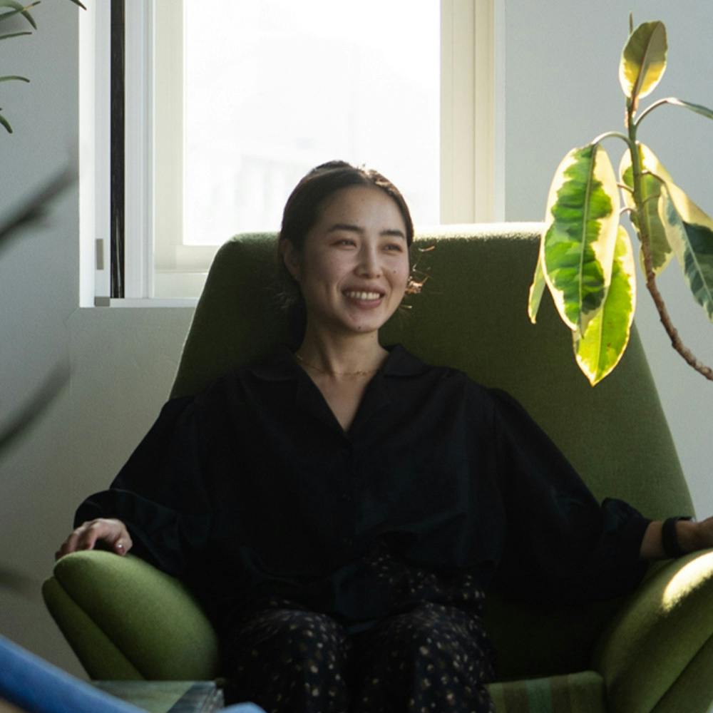 イケてる家具に囲まれご満悦のわたし(撮影 Ritsu Takada)