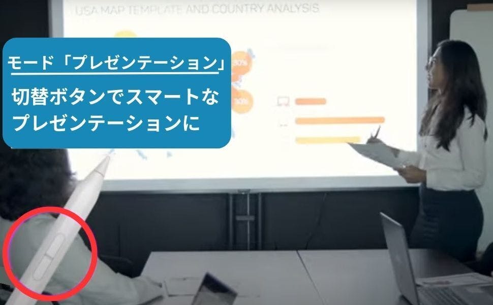 また、モードの「プレゼンテーション」を選択すると、スイッチングで「前 / 次」の切替に早変わり。スマートなプレゼンテーションを実現。