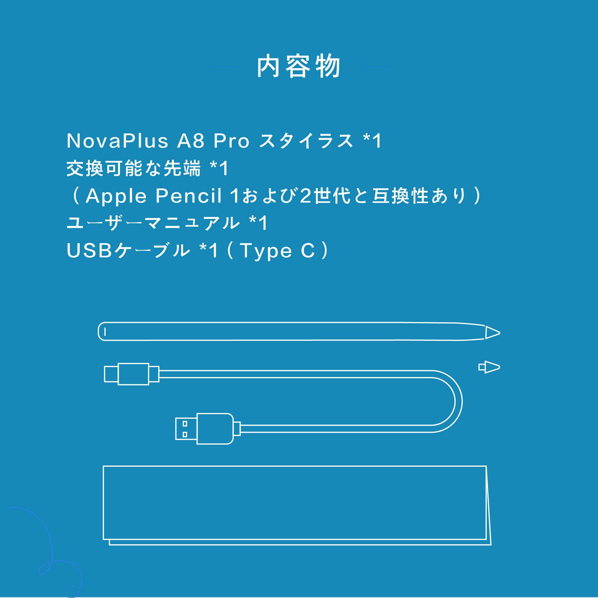 『A8 Pro』は、Apple Pencil1/2に互換性のあるオプションを共有可能。必要な時に手に入る安心感があります。