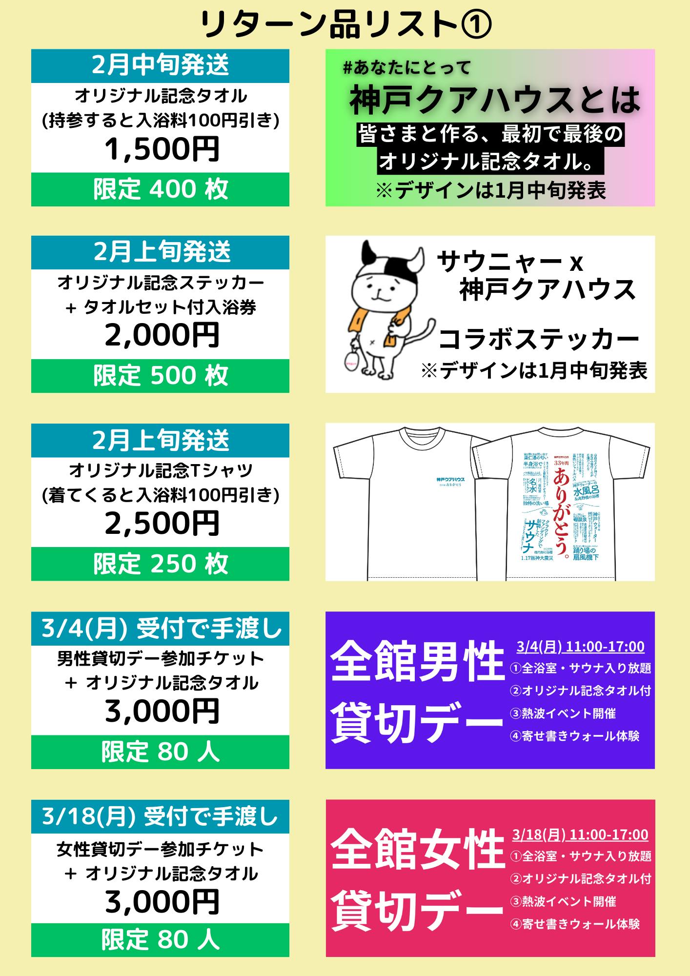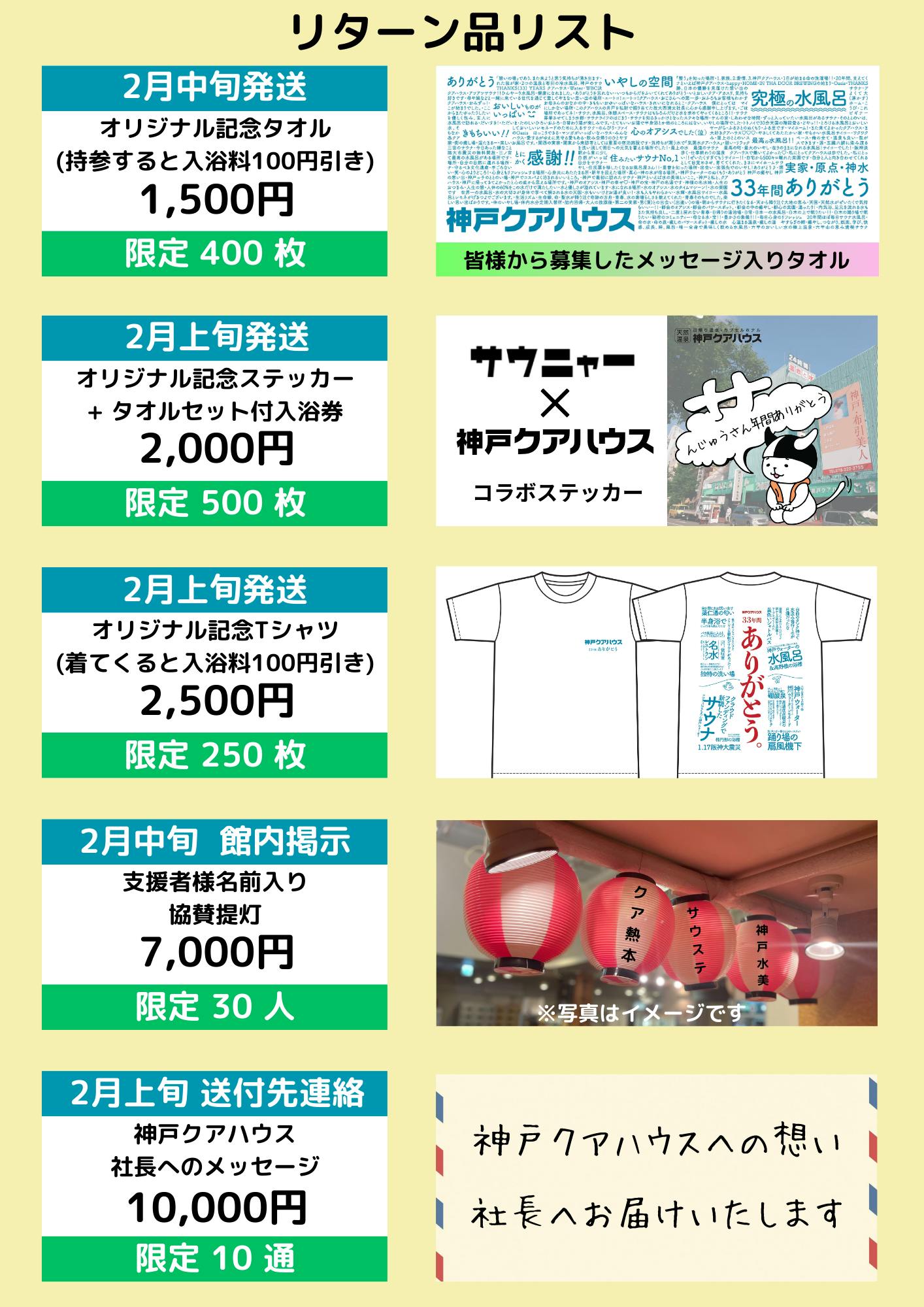 ご支援いただいたお金は、皆様への感謝を込めた記念グッズの製作費、休館までにクアハウスへ足を運びたくなる様なイベントやサービスのために充てさせていただきます。