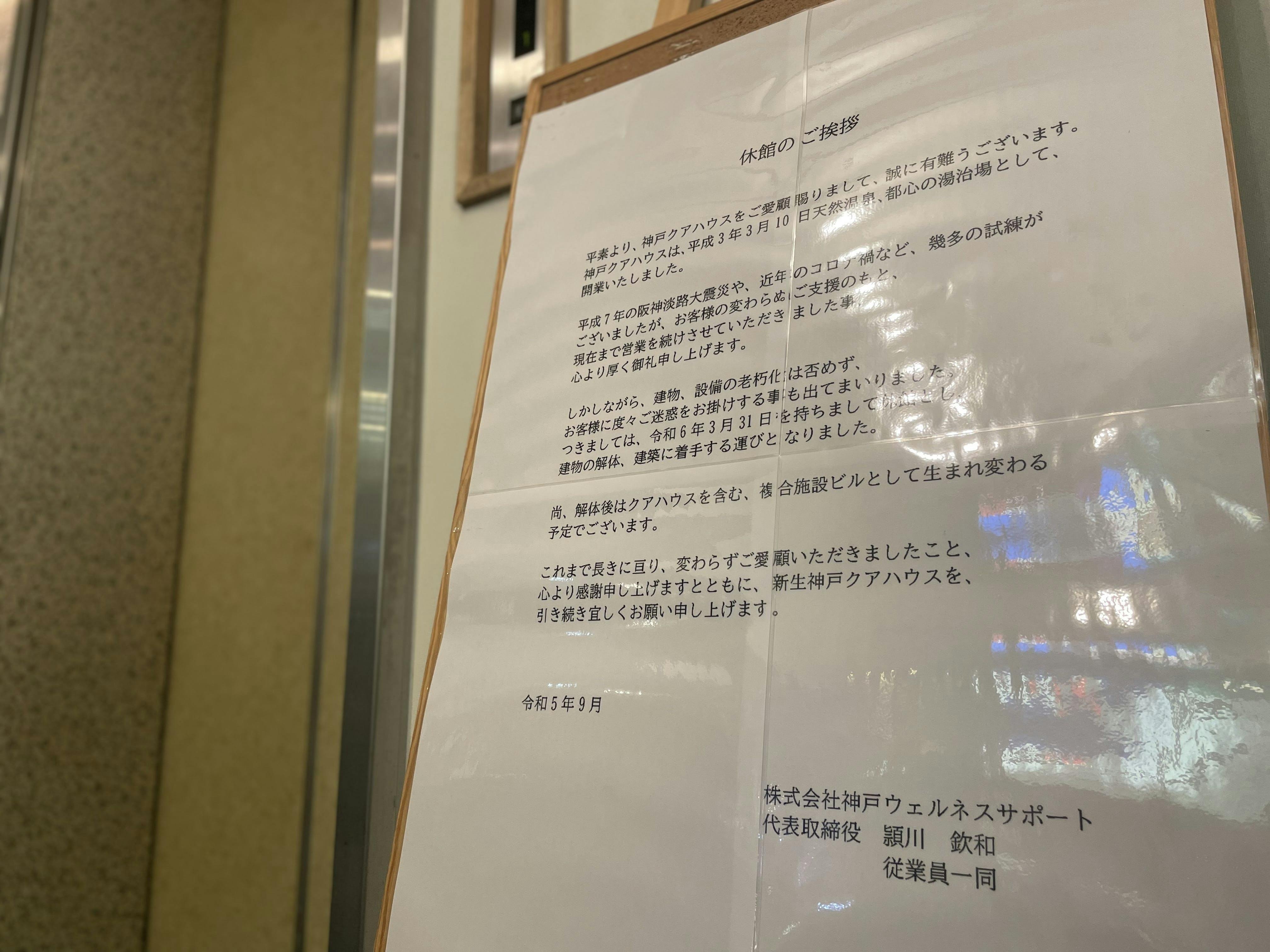 1991年に誕生した神戸クアハウスは、設備の老朽化などにより、2024年3月末を持って長期休館。解体・リニューアルすることになりました。
