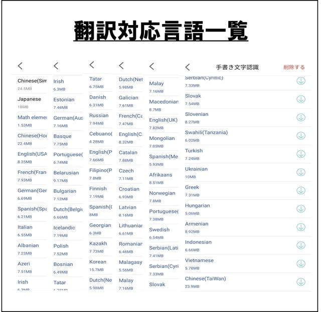 DIGIPEN専用アプリは、現在66以上の言語を認識し電子テキスト化と翻訳に対応しています。日本語、英語(アメリカ/イギリス)、フランス語、ドイツ語、中国語(簡体/香港/台湾)等!