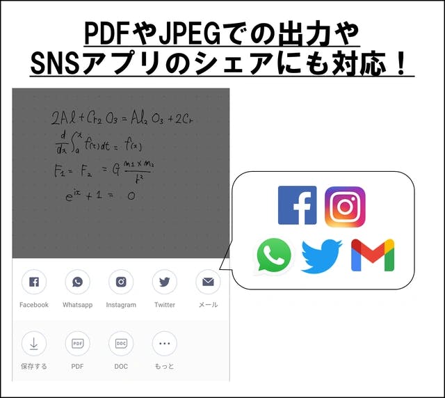 ✅ SNSやメール等、他アプリでのシェアも簡単PDFや画像保存(JPEG)にも対応