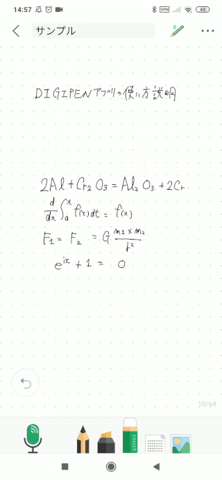 DIGIPENに手書きした内容を専用アプリに同期しデジタル化すれば、手書きした過程をリプレイ可能です。