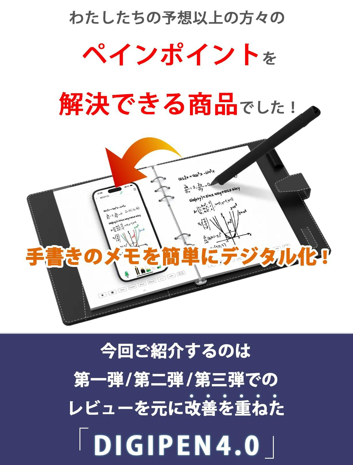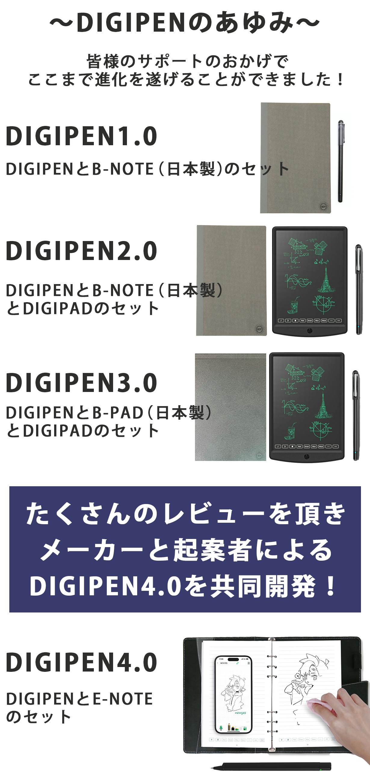 今回提案する商品は、以前にプロジェクトを行ったDIGIPENの進化版です。支援者の皆様、その節はありがとうございました。支援者の皆様のお声をもとに、さらに良い商品を開発に努めており、より進化したDIGIPENが完成致しましたので、皆様にご提案させて頂きたく、プロジェクトの立案に至りました。