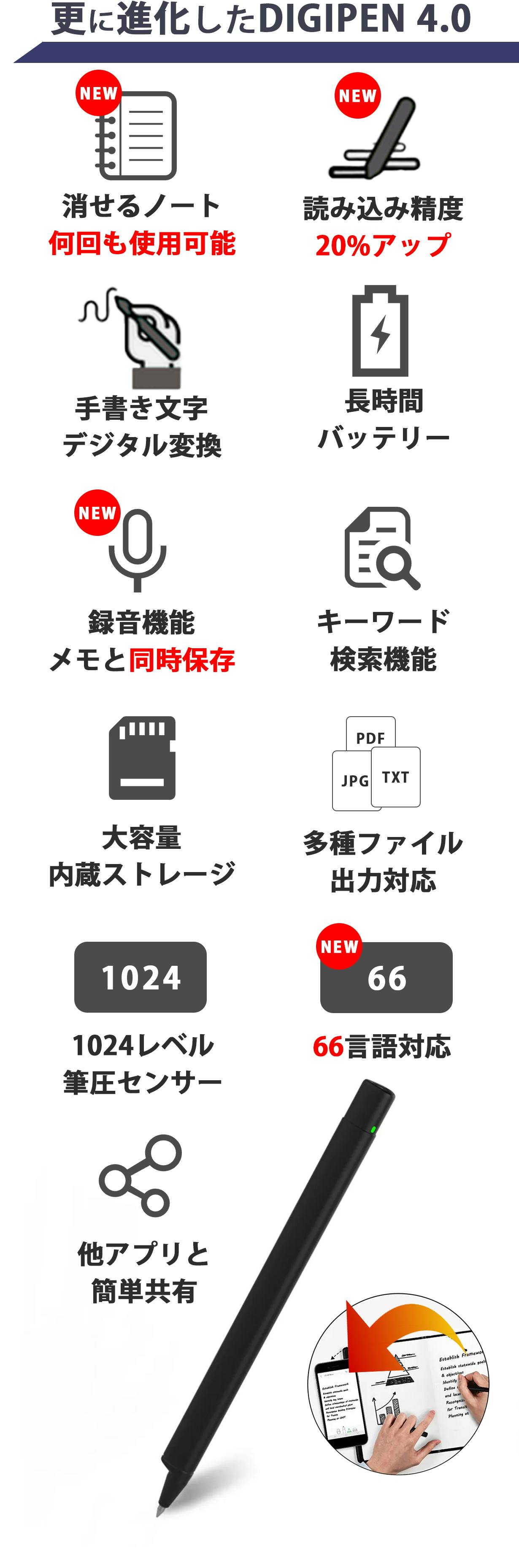A. 以前のDIGIPEN 1.0〜3.0は今回のノートを使用できないのでご注意ください。