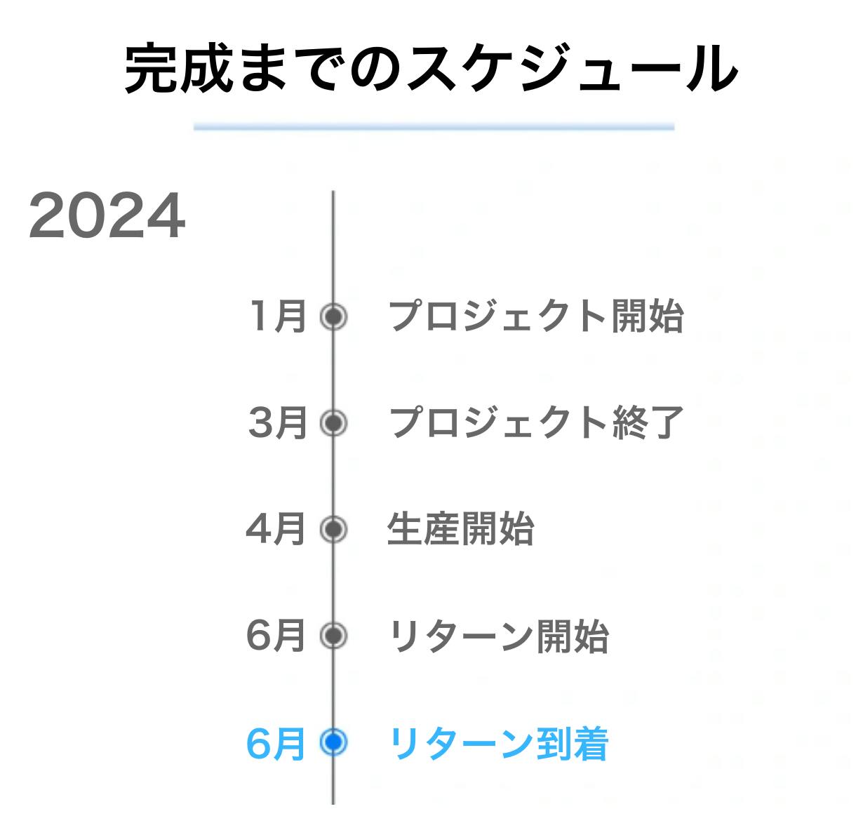 ※本文中に記載させていただいたスケジュールは、あくまでプロジェクト公開時点の予定です。クラウドファンディングを経て輸入を行う性質上、配送遅延のおそれがございます。