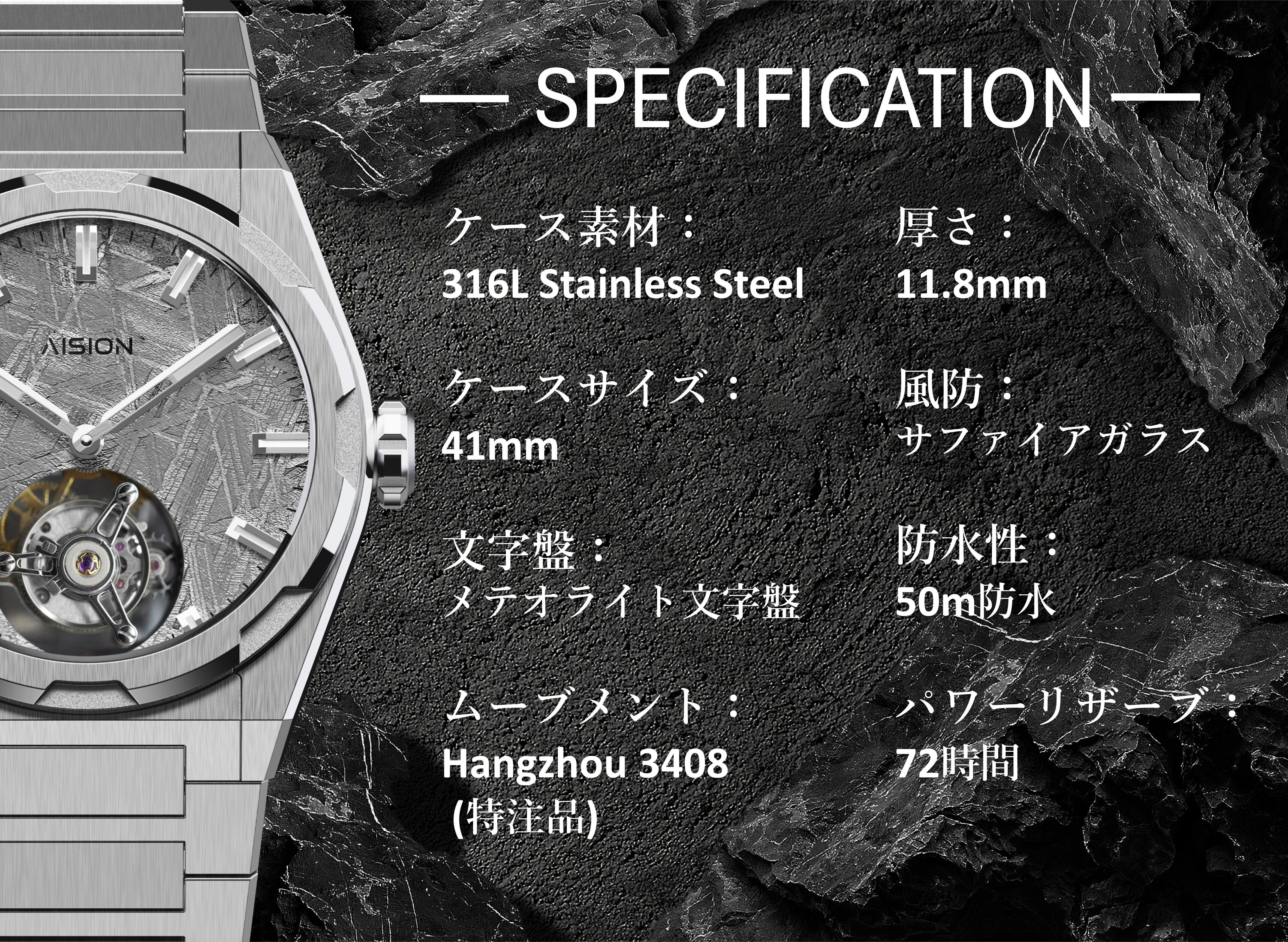 市場には素晴らしい機械式腕時計が多数ありますが、メーカー史上最新の製造技術によりトゥールビヨン×メテオライトを比較的手の届きやすい金額にて実現した本作を、ぜひ手に取って頂けますと幸いです。