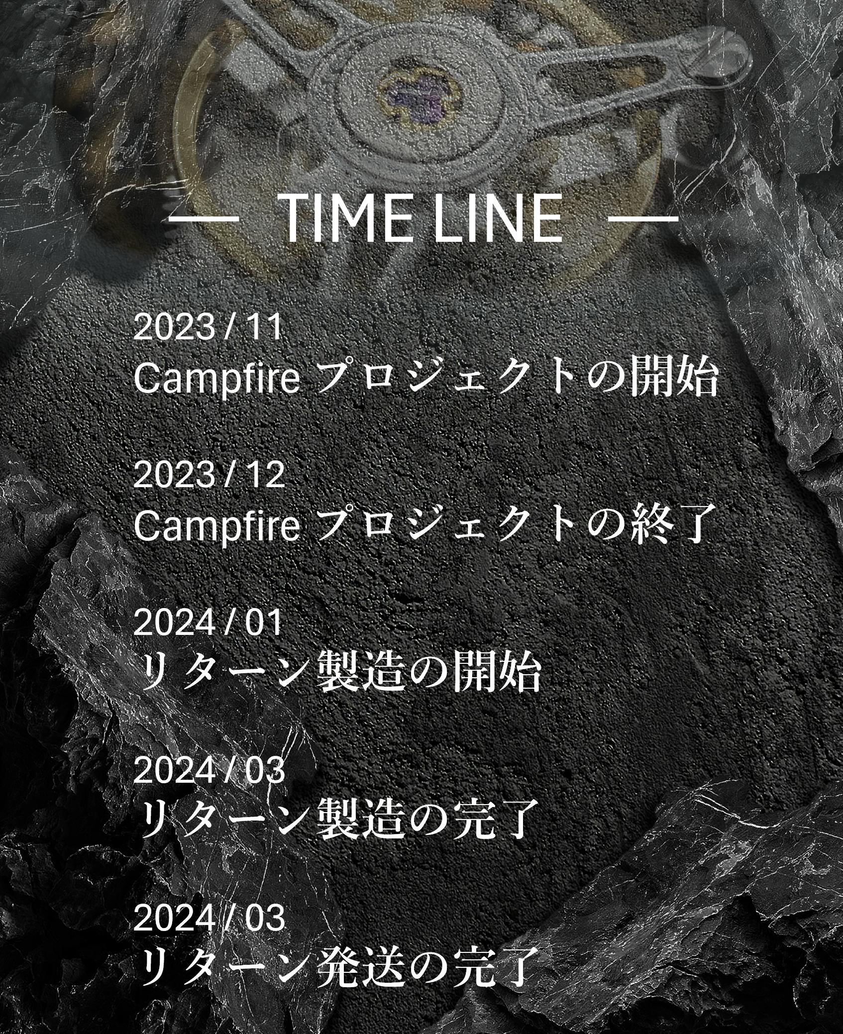 ●引渡し時期: 各リターン詳細に記載の発送予定月を引き渡し時期とします。但し、開発・生産状況によって遅れが生じる場合がありますのでその際は当プロジェクトページ内の「活動報告」または購入者へのメール等で連絡します。