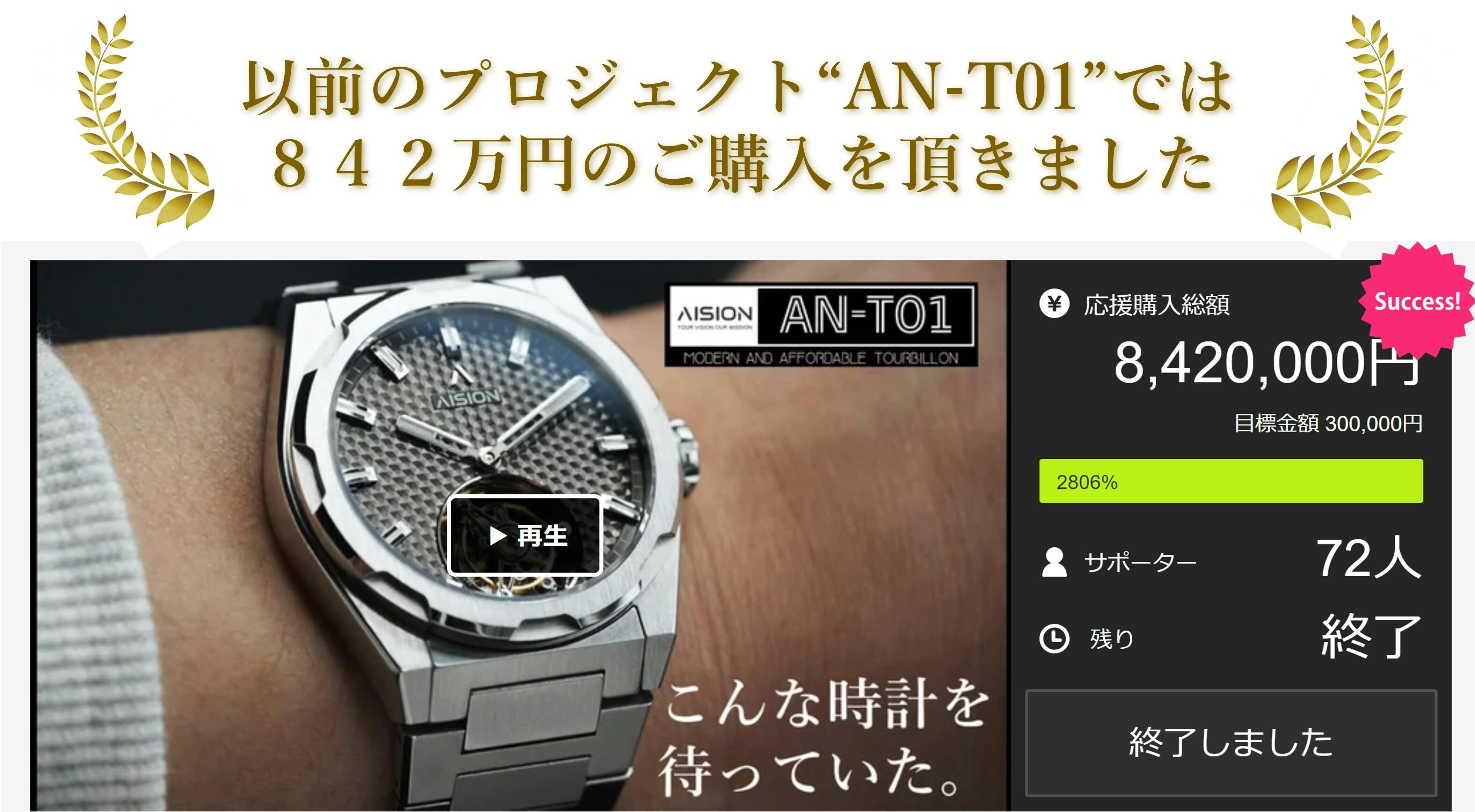 開発の特徴的な文字盤と、世界三大複雑機構と呼ばれるトゥールビヨンの低コスト化に成功した前作AN-T01。