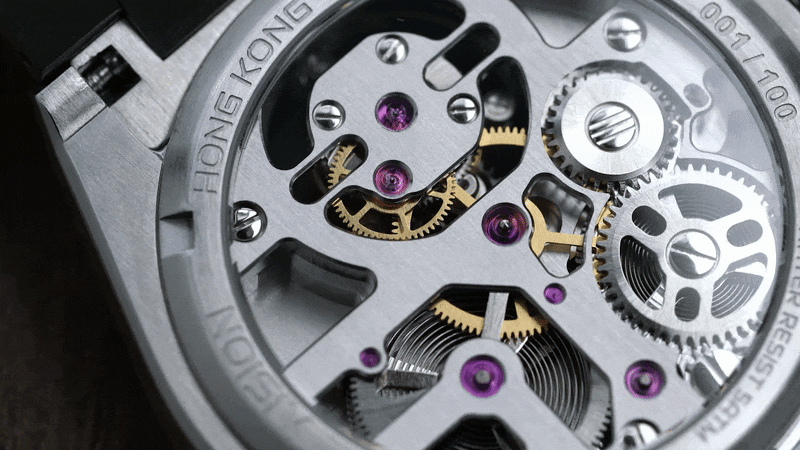 今回の特注品では、巻き過ぎた際には自動で力を開放し、ゼンマイやムーブメントの故障を防ぐ機構を備えています。