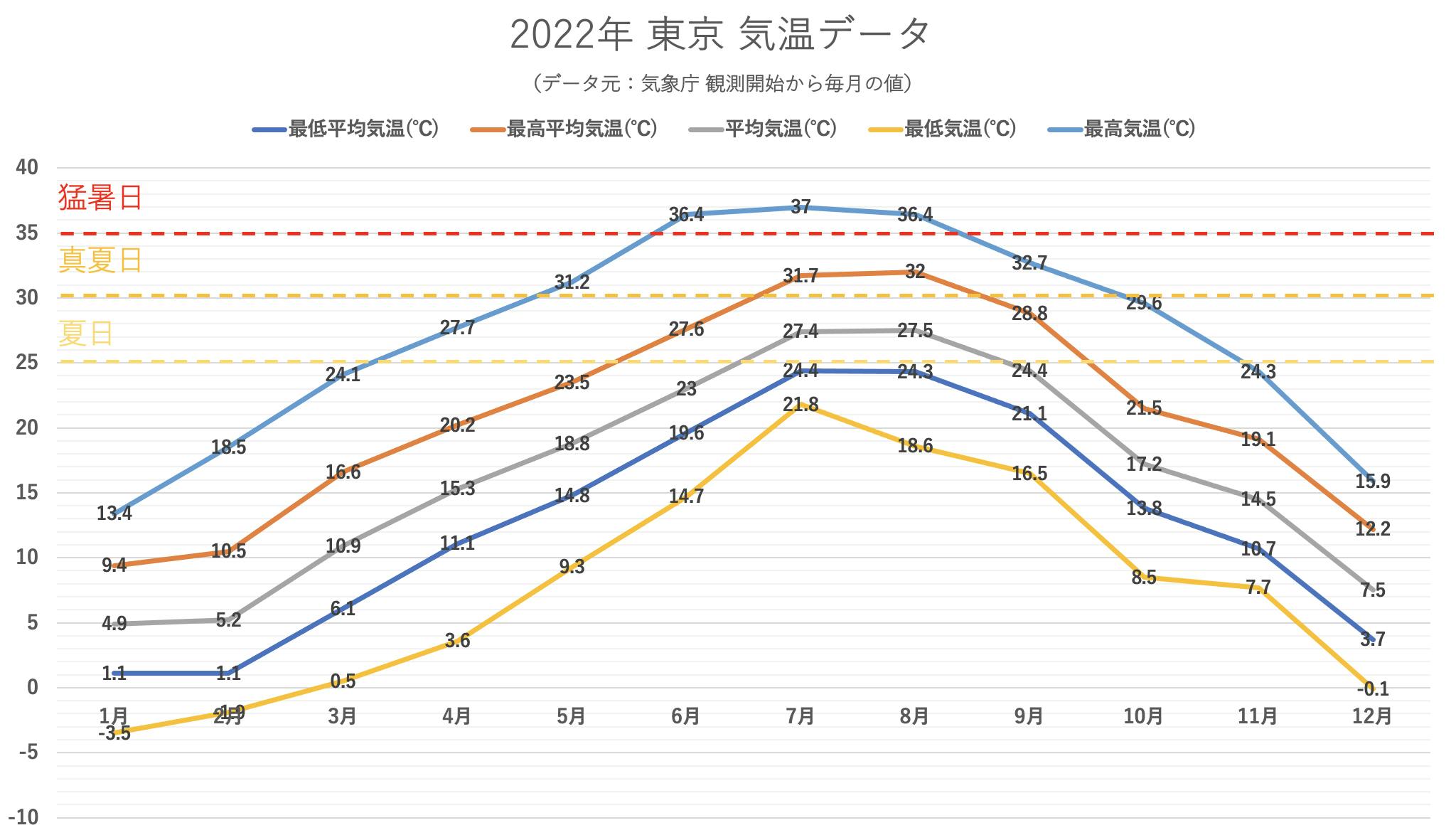 東京都の2022年の年間気温のグラフです(2023年通年はタイミング的に未取得)・・・4月中旬から10月の中旬までの半年間はライダーにとって「陽射し+暑さ+汗」との戦いになりますよね(苦笑)最高気温だけ見ると真夏日・猛暑日は5ヶ月続きます(涙)