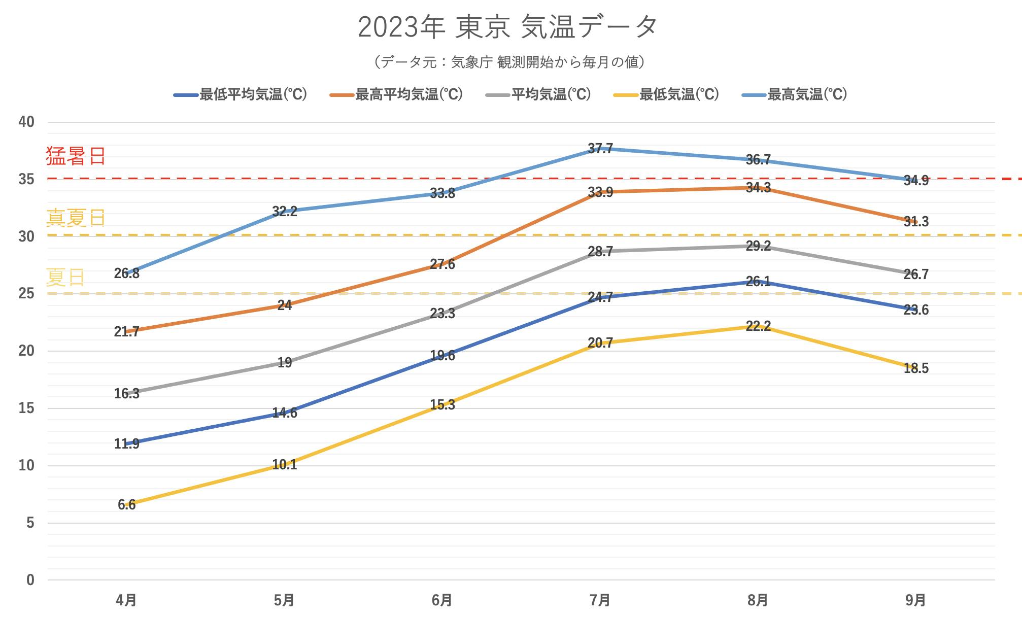 では、記憶に新しい2023年の4-9月の気温はどうか?