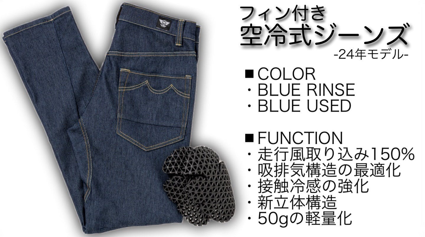 2024年モデルの【フィン付き空冷式ジーンズ】はYouTube内で開発した ファッション × バイク × ファンクション× セーフティー な「夏のライダーを救う」ジーンズです٩( 'ω' )و