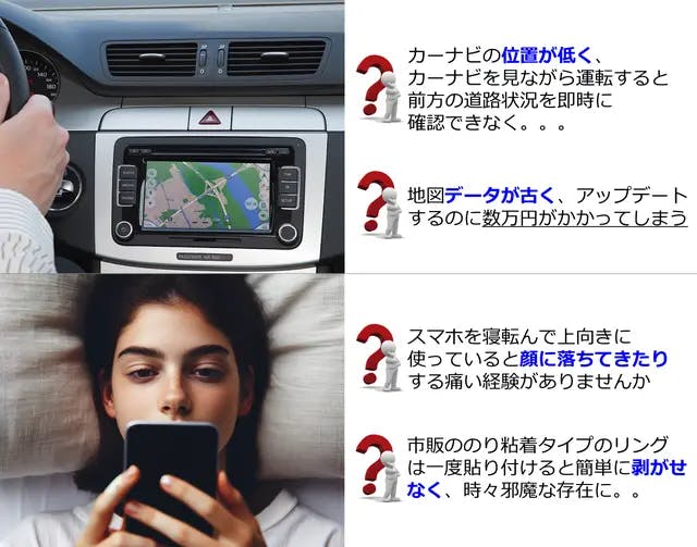 最新の地図データを利用できるスマホを簡単にカーナビとして使えるような