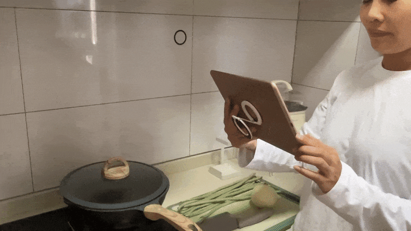 壁の空いてるところにつけるだけで、レシピ、タイマーを確認しながら料理できます。料理の隙間に、映画、ネットテレビ放送なども楽しめます。