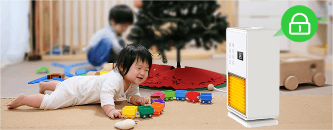 モードボタンを2秒以上長押しすると、チャイルドロックモードになります。ヒーター本体およびリモコンのボタンはすべて操作できなくなるため、お子様やペットのいるご家庭に最適!