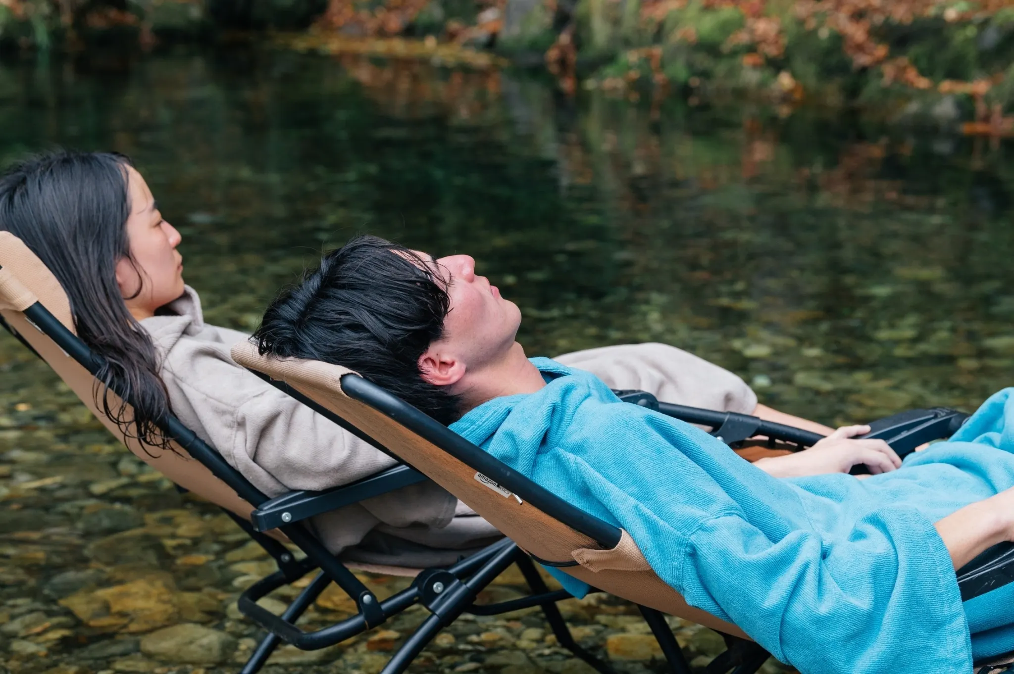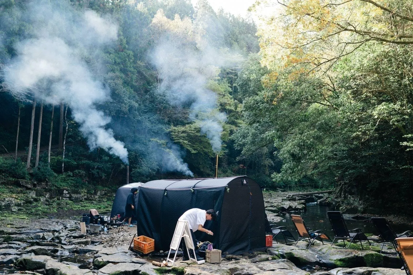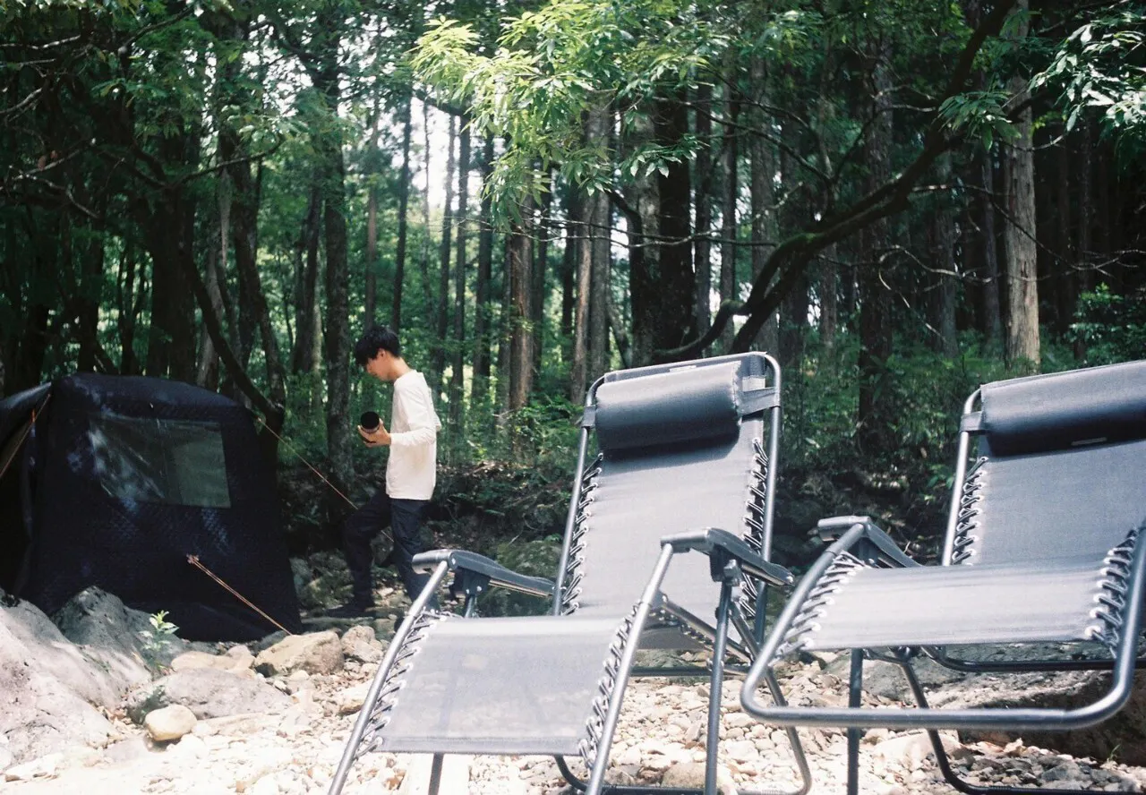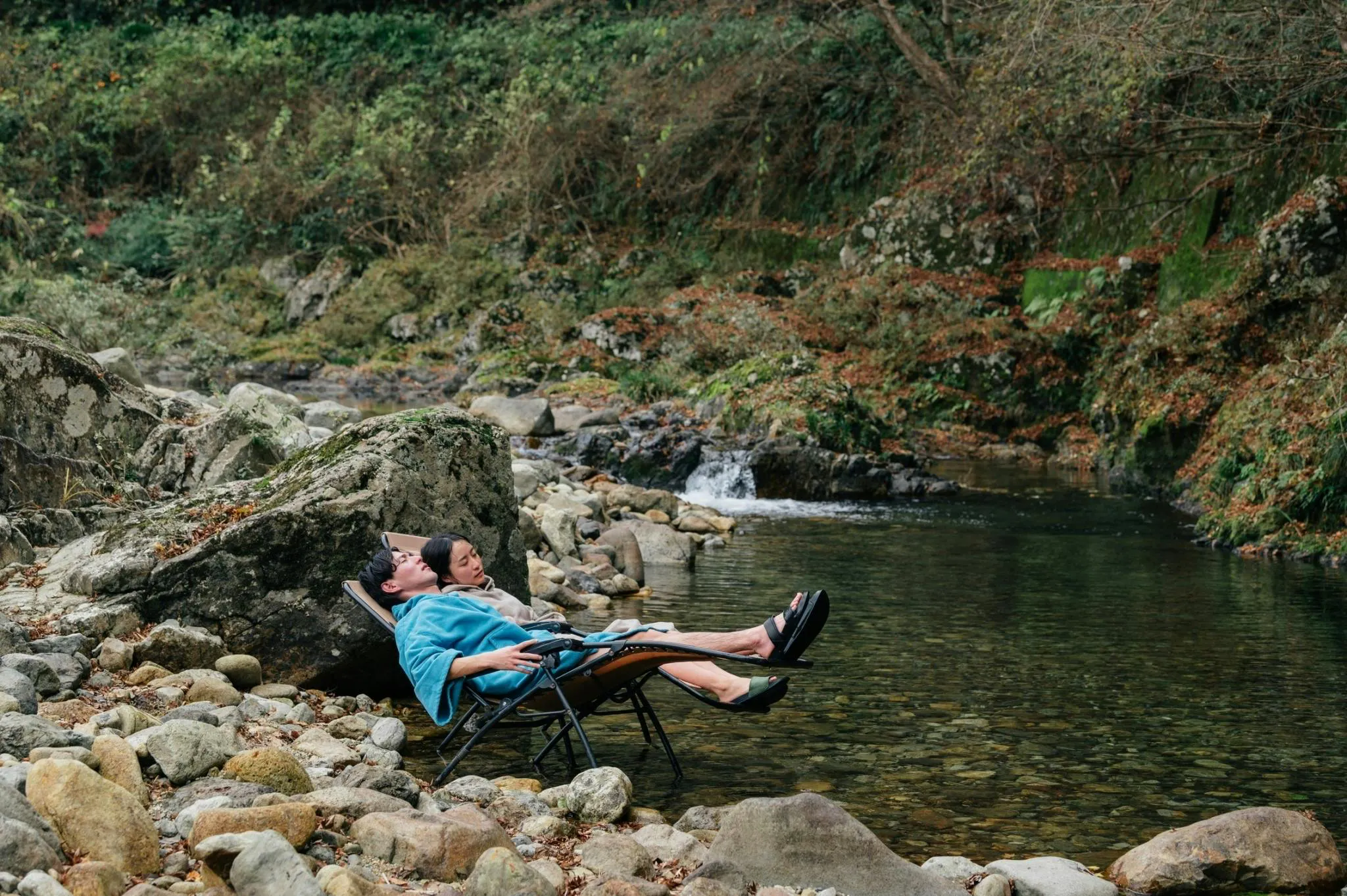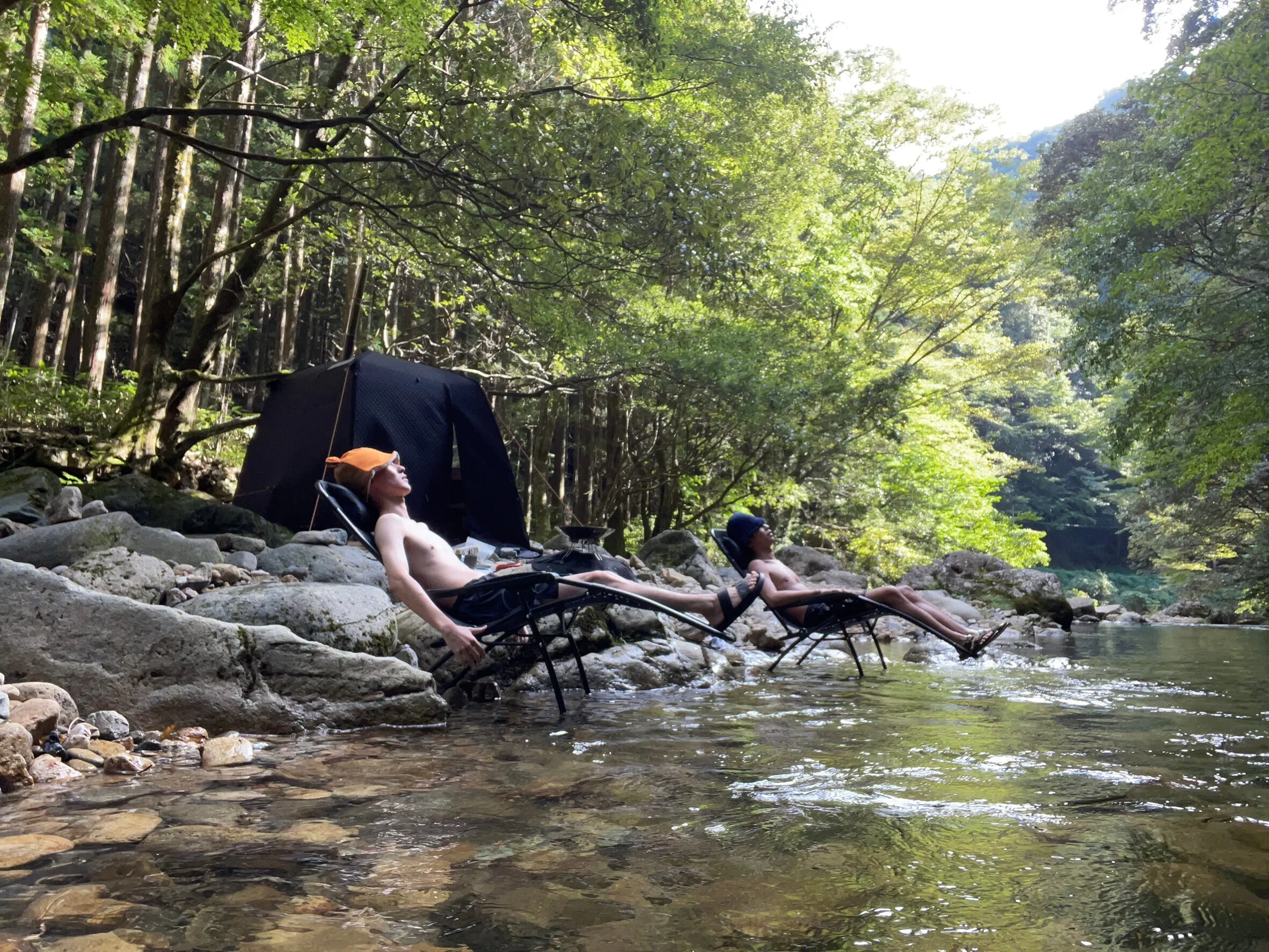川にダイブした後は、大自然の中での外気浴。目を閉じれば自然の音だけが響き心地よい風を感じます。