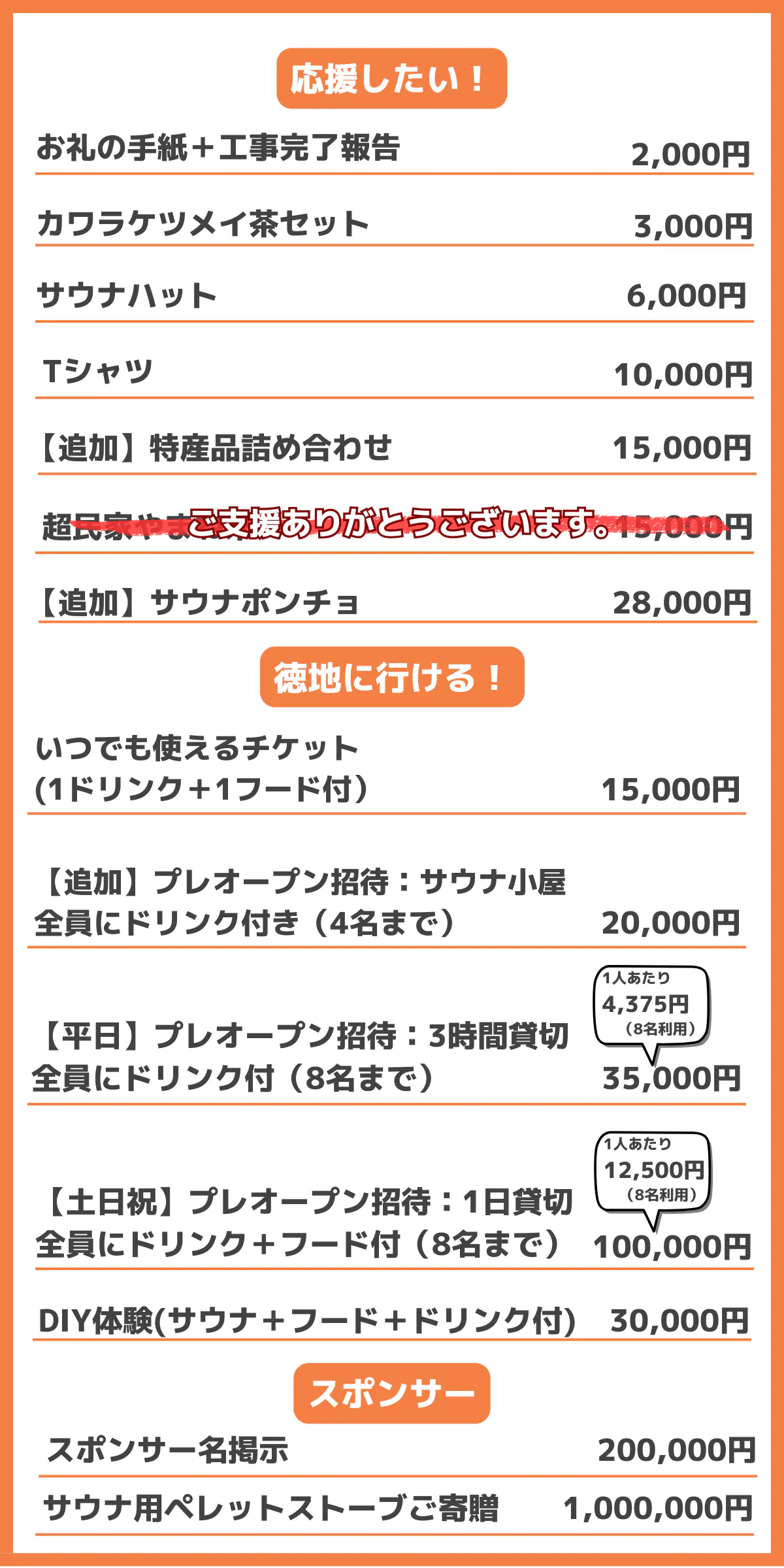 クラウドファンディングでの支援金以外に、自己資金(550万円)と※山口市農山村地域活性化ビジネス支援補助金(600万円)を使用します。