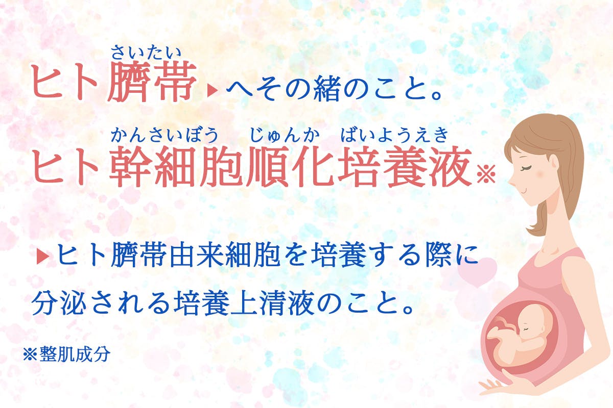 超希少成分「ヒト臍帯由来・ヒト幹細胞順化培養液」配合。※整肌成分