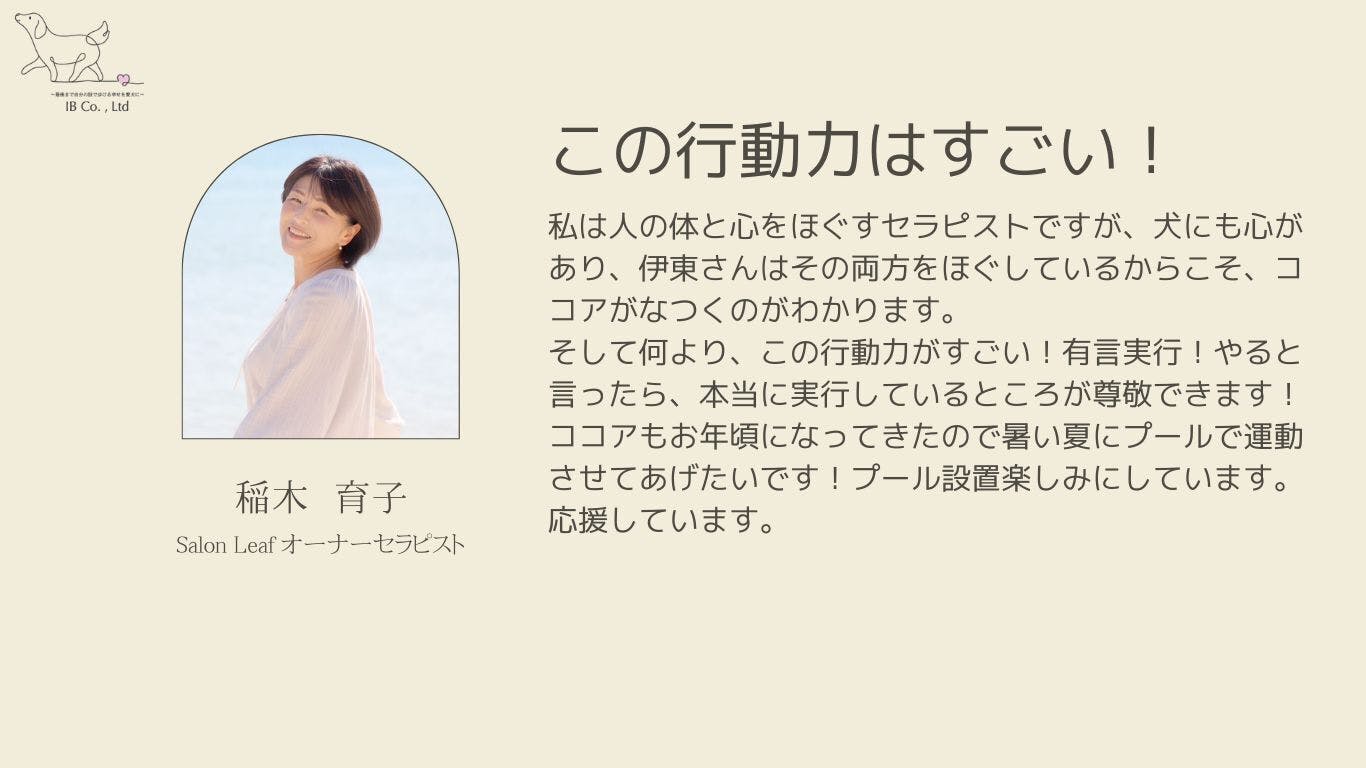 今愛犬の身体で悩んでいる人にこれらの知識や技術が役に立つのであれば、ぜひこちらの内容を多くの方にお伝えしていきたいと思っています。