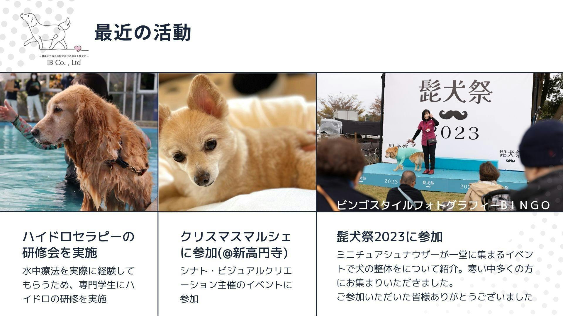 ・愛犬の身体について学んでいただき、飼主さん事態が愛犬のケアができるようにサポートしたい!
