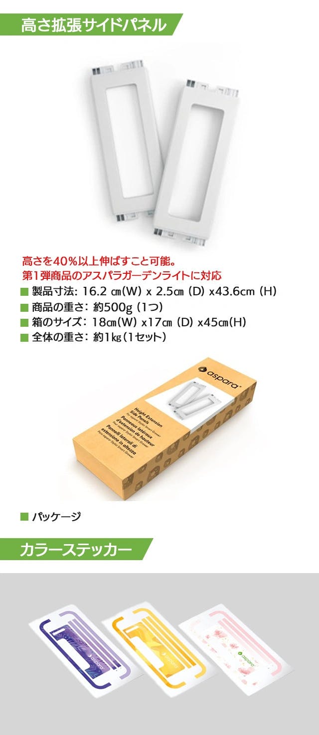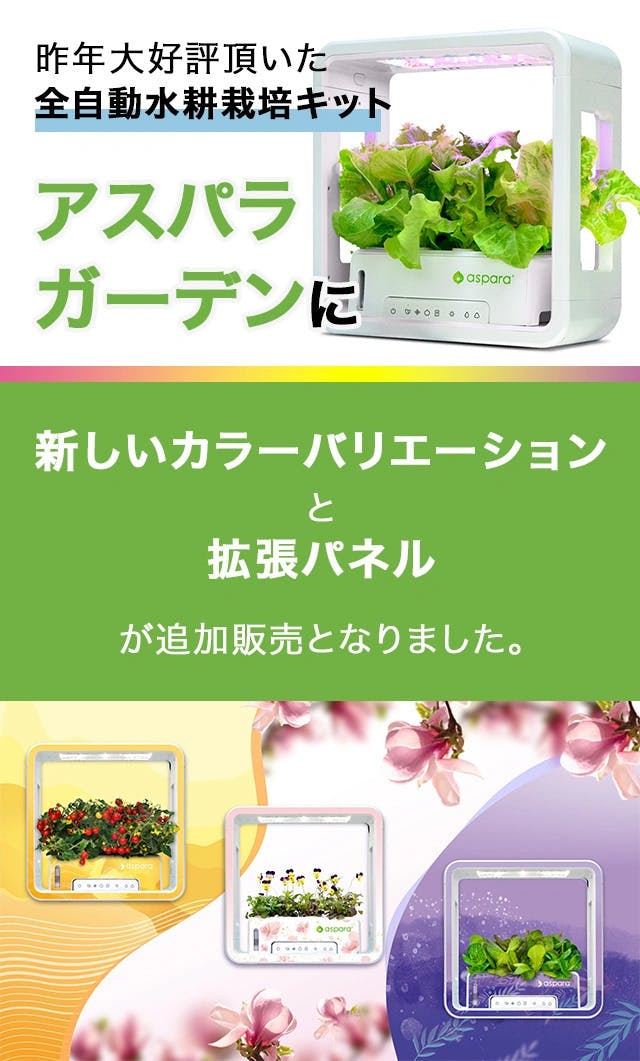 グローグリーンは香港で2016年に設立され、さまざまな水耕栽培植栽システムを開発しました。第一弾の商品「アスパラガーデンNature」はカナダ、米国、多くのヨーロッパ諸国などの海外市場でとても人気がでました。また「STEAM教育」の教材として香港の学校や高齢者施設に100か所以上導入されました。昨年発売した「アスパラガーデンLITE」は一回りサイズを小さくし、より一般家庭で受け入れやすいサイズ感となっています。拡張パネルを使うことで育てられる植物の幅が広がり、より楽しんでいただける商品となっています。