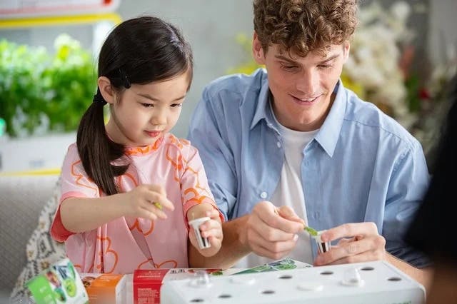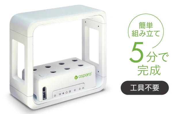 「アスパラガーデンLITE」は誰でもどこでも簡単に、室内で種から野菜やハーブ、お花を育てることができる 室内用水耕栽培キットです。