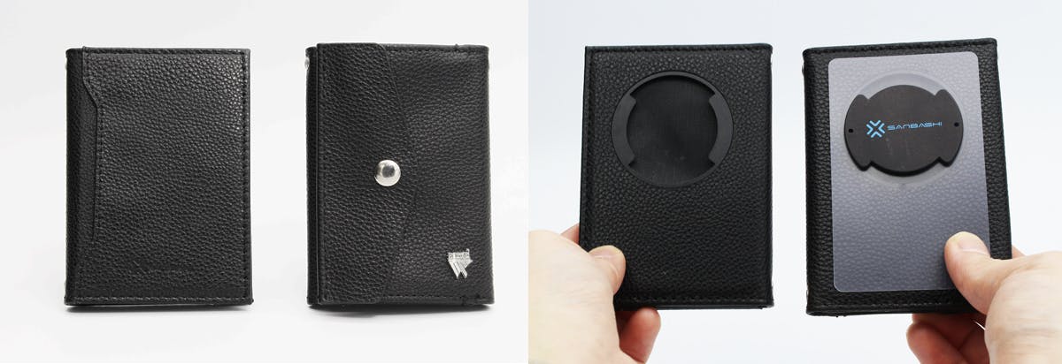 財布「and W」とカードケース【+card】を瞬時にドッキングできる。財布・カードケースへの着脱は何度でも自由に。