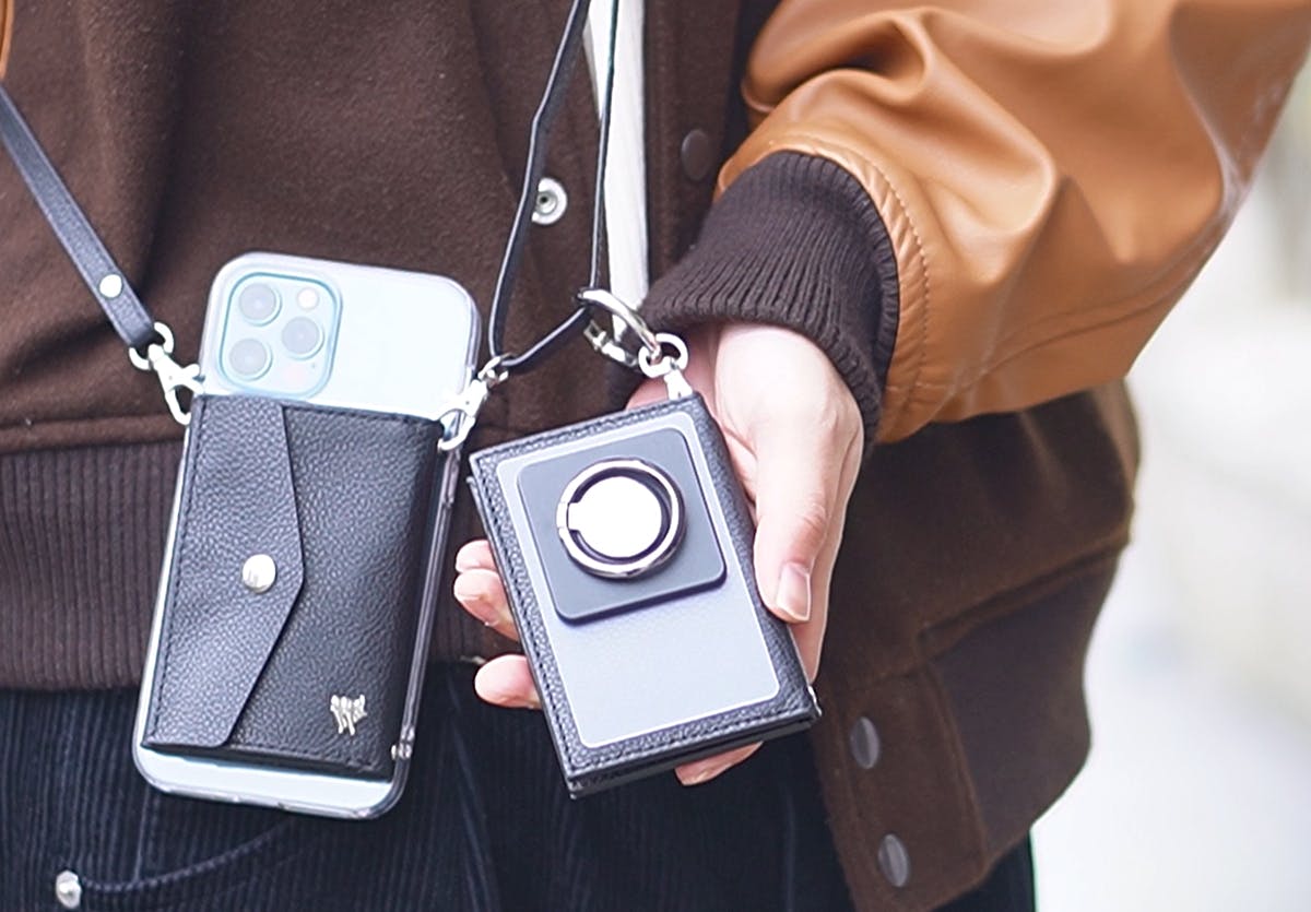 財布・カードケースの「マウント」と互換性のあるスマホリングもご用意。帰宅したら財布を外して、スマホリングで持ちやすく、 スタンド利用で動画も視聴しやすく