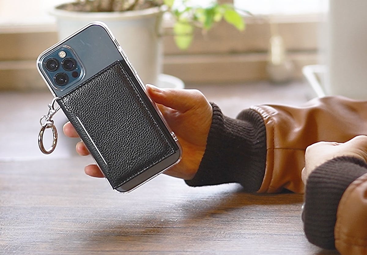 カードケース【+card】もスマホにドッキング可能。取付け・取り外しも自由に。