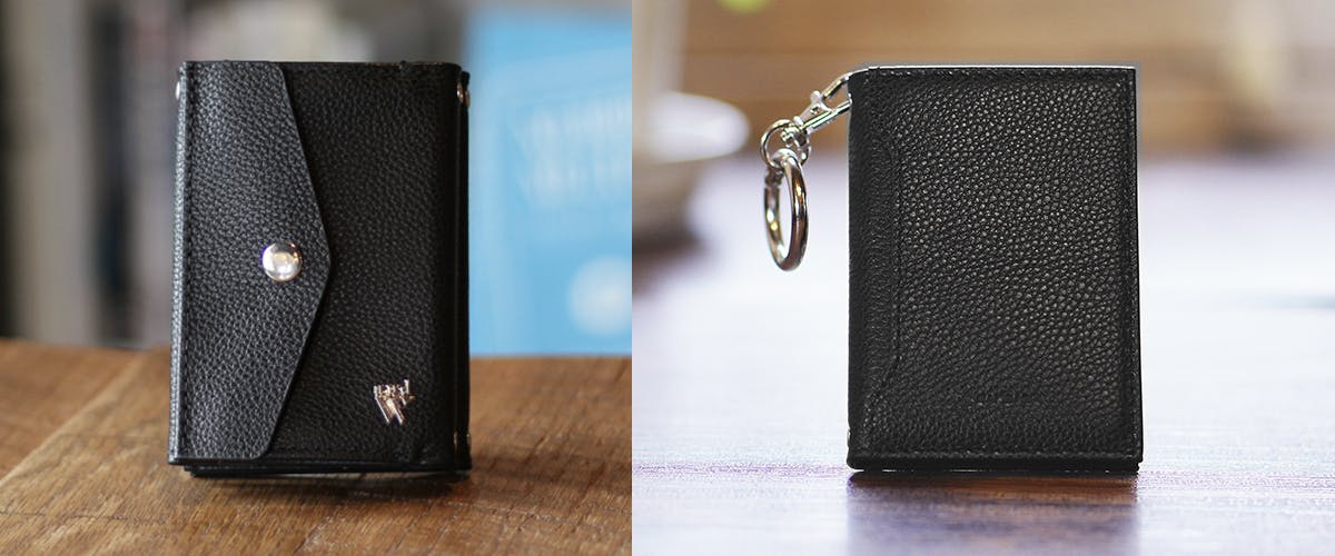 キーリング付きのカードケース【+card】を後付できるので、カード容量が財布と合わせて「最大11枚」に(カードケースには7枚収納できる)
