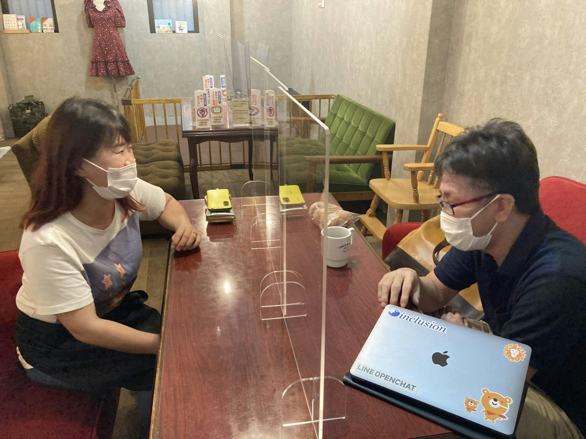 仲さんへのインタビュー時(コロナ禍でアクリル板が設置されていた時期)