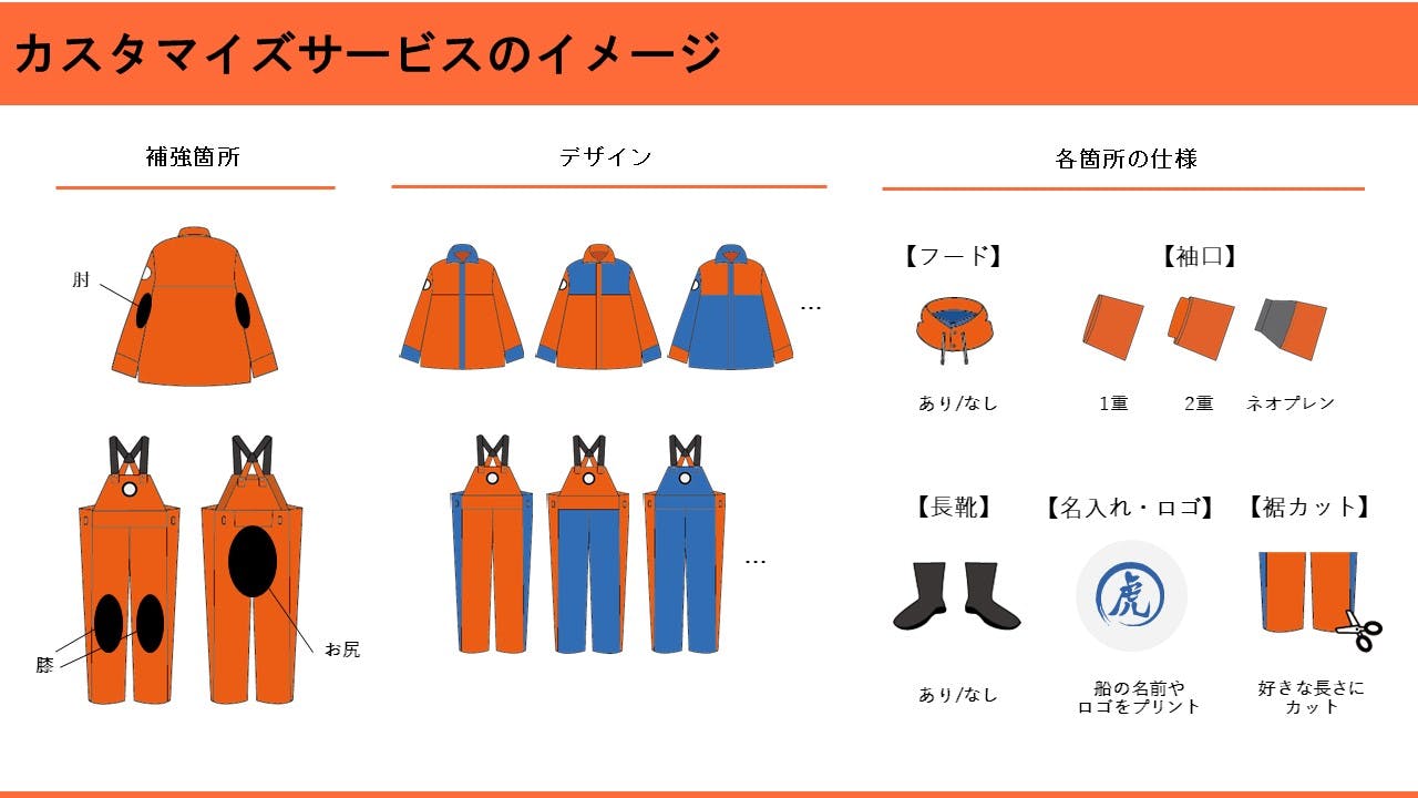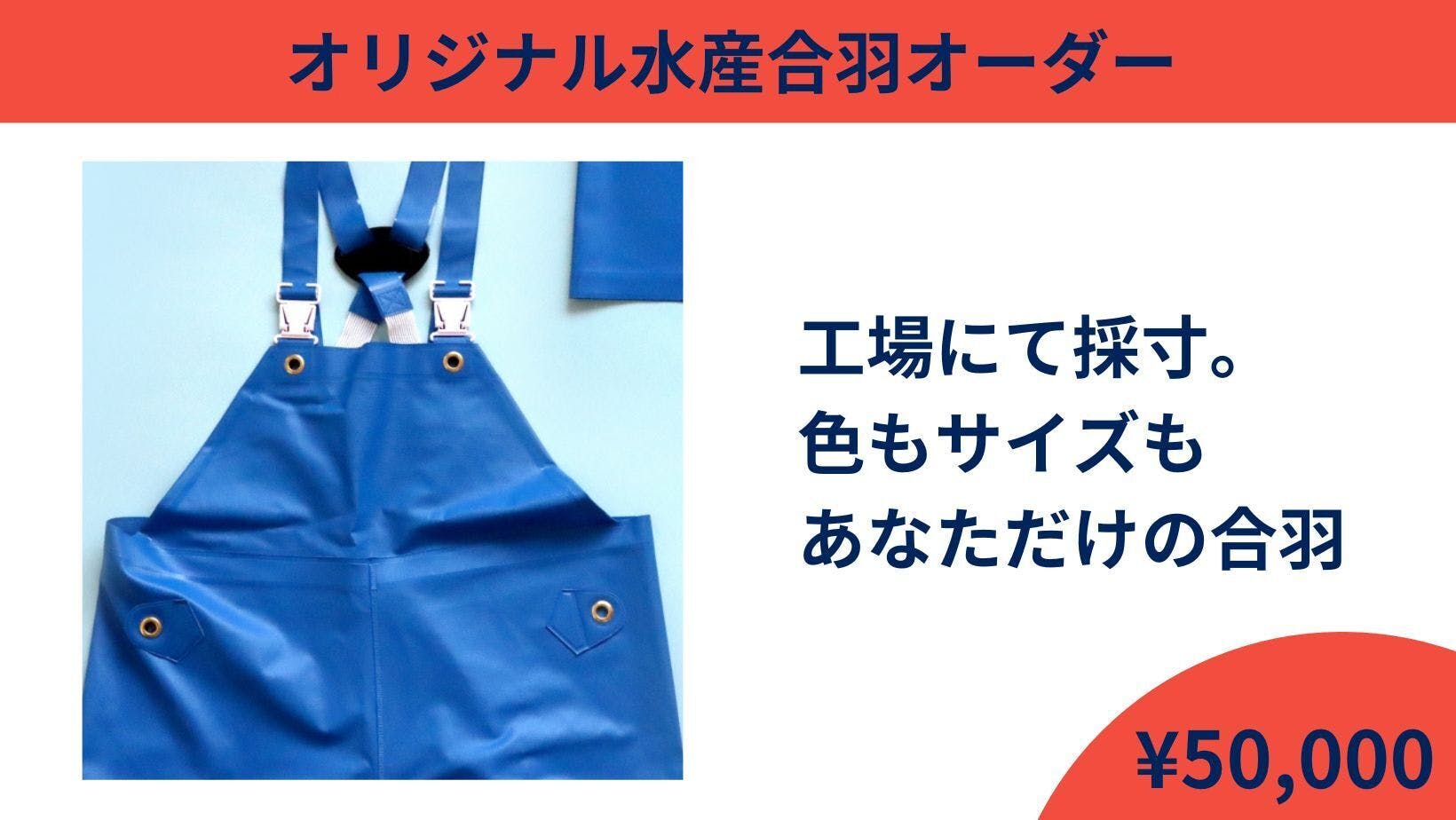 ▼サイズ、色、その他、ご要望にできる限りでお答えします!オリジナル水産合羽オーダー
