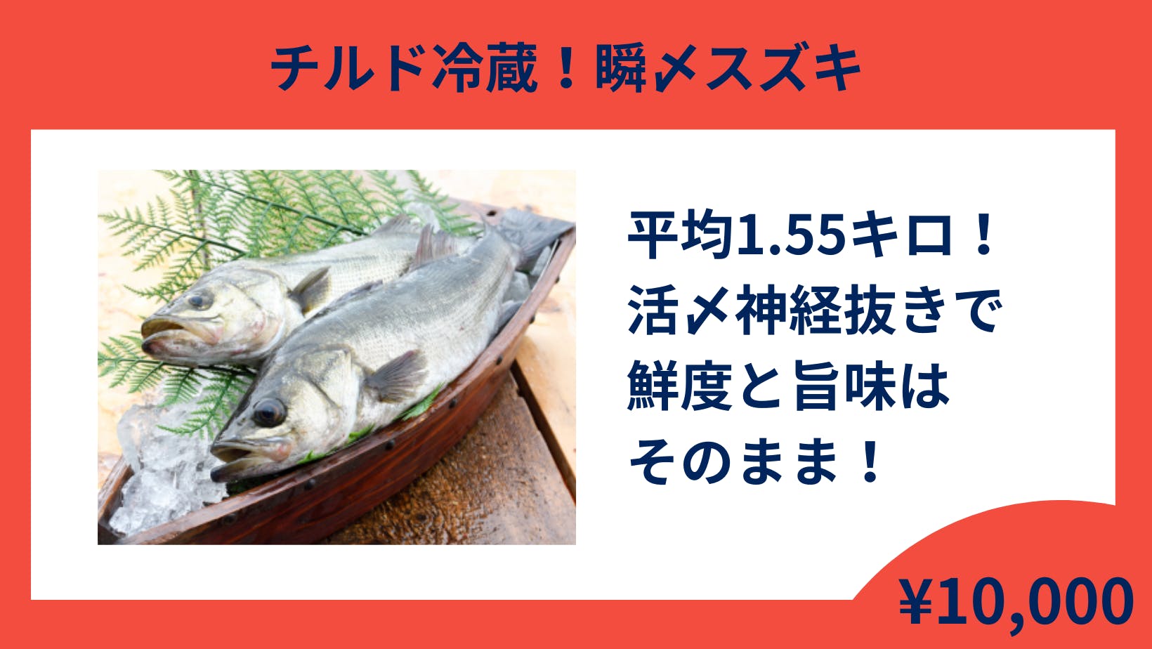 リターンとして大傳丸さんが獲った美味しいスズキをお届けいたします。